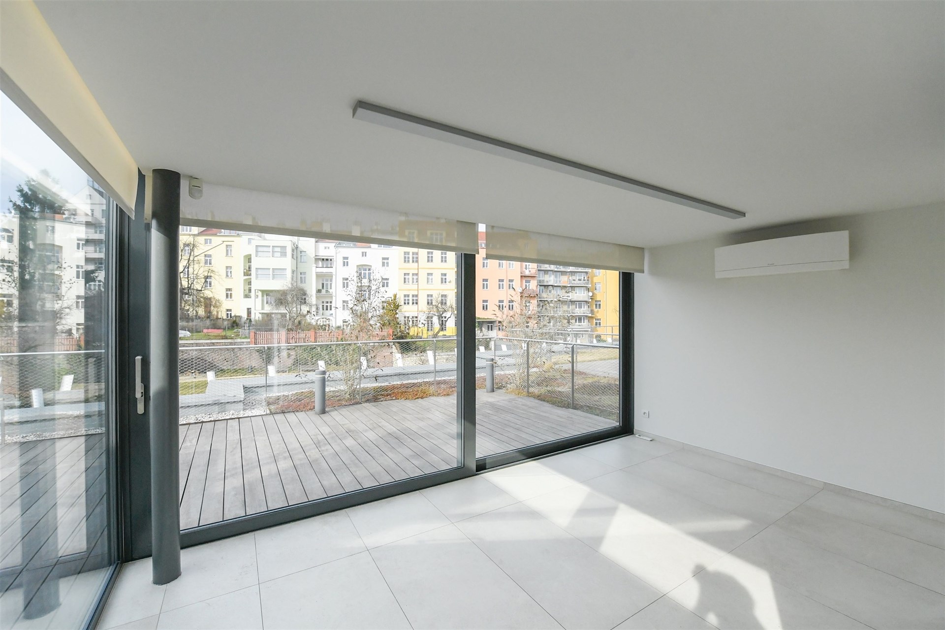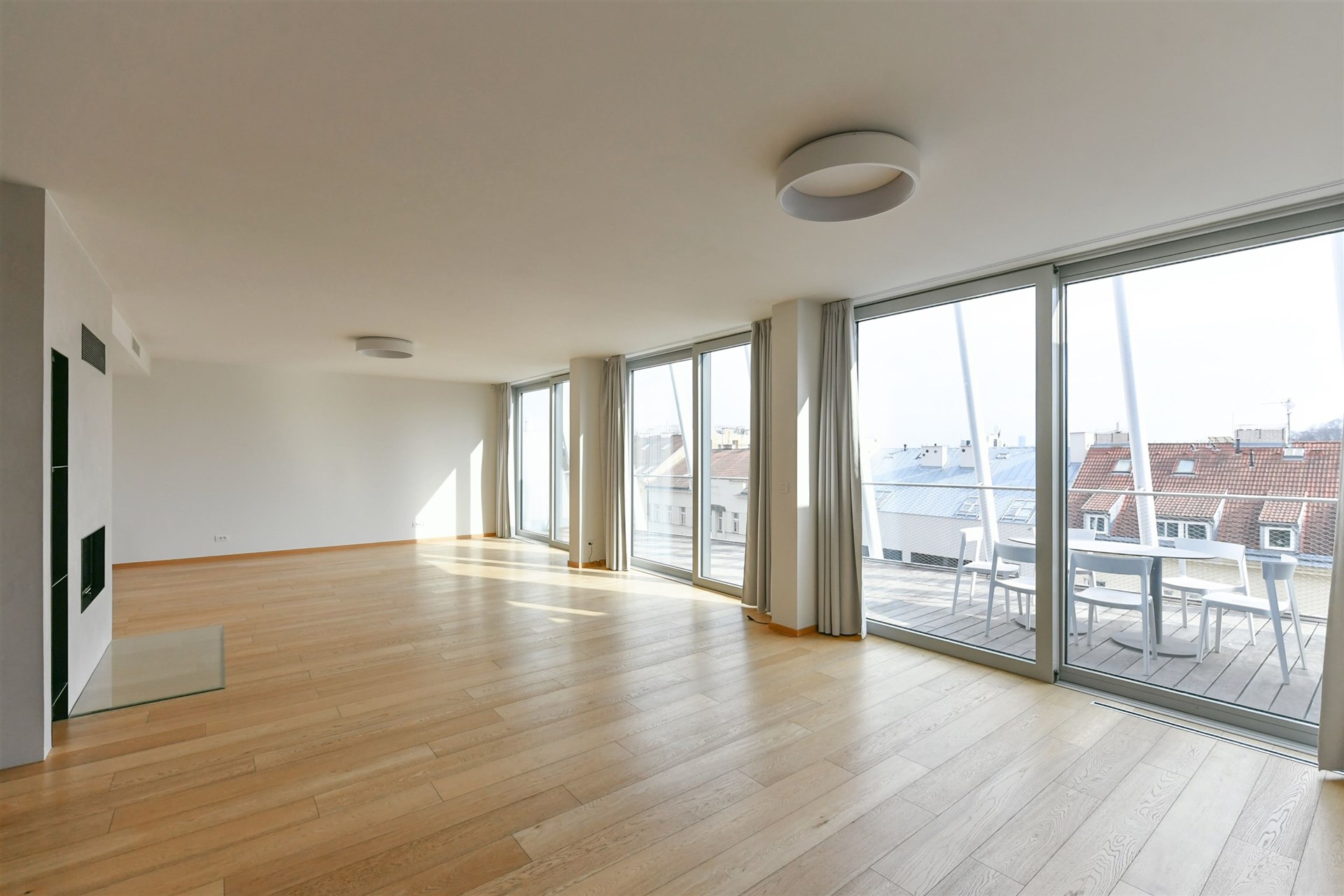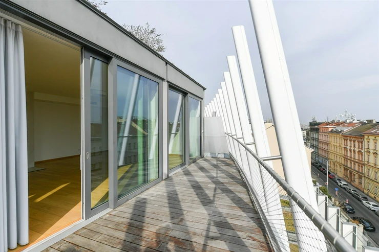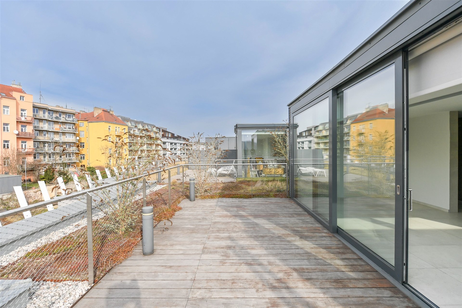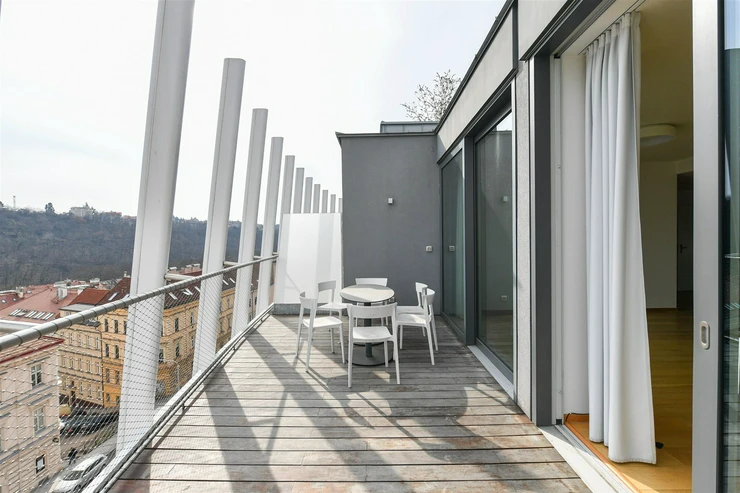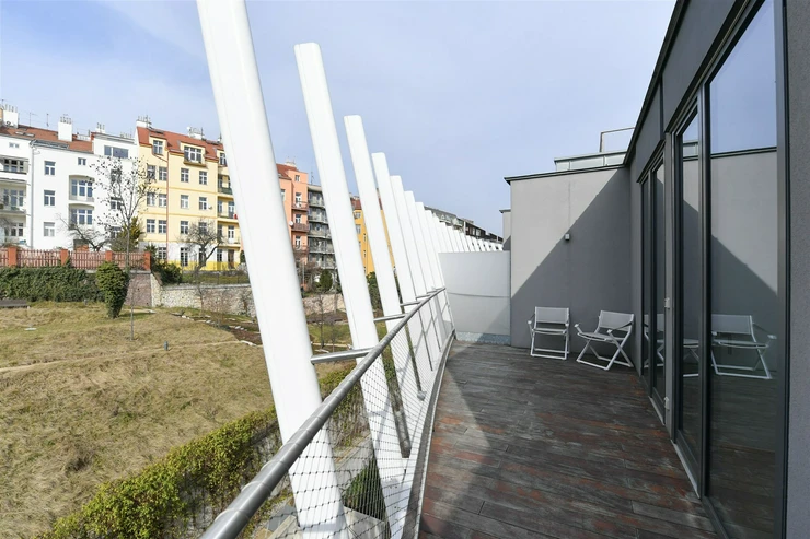 We offer for rent an exceptional duplex apartment with a 4+kk layout featuring several rooftop terraces and its own wellness facilities, situated on the 6th and 7th floors of the unique Ellipsis residence in Prague's Smíchov, located on Holečkova Street. This spacious apartment is ideal for long-term rental and is ready for immediate occupancy.
