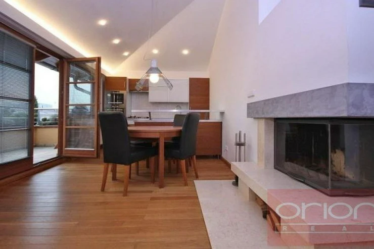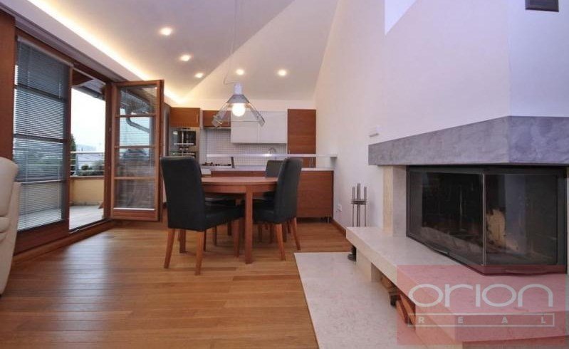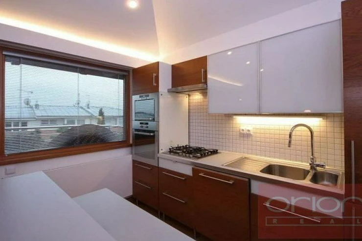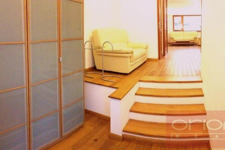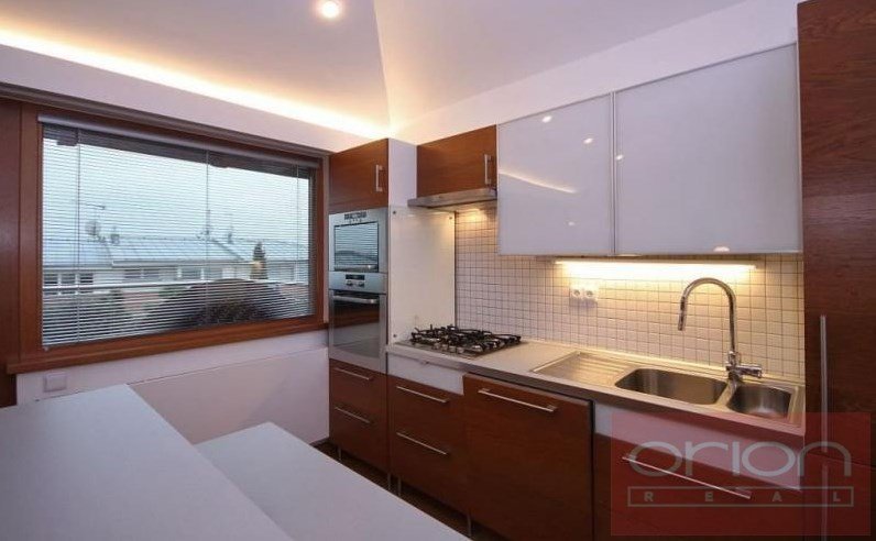 We offer for rent a spacious sunny two bedrooms apartment with a terrace on the 2nd floor of a four-story villa in a quiet residential area of Prague 5 - Jinonice, near the protected nature park Vidoule. The apartment with a total area of 98 sqm offers a living room with a fireplace and a fully equipped kitchen with access to a 35 sqm terrace facing south with a beautiful view, 2 bedrooms, a bathroom with a bathtub and a toilet, and a separate toilet. The apartment is partially furnished, the equipment includes solid oak wood floors, doors with safety glass, Marazzi stone tiles, videophone and alarm. Location with excellent transport accessibility and all civic amenities. The nearest shopping center Galerie Nové Butovice is about a 10-minute walk away, as is the German International School. The French Lyceum is about 15 minutes by car. Nové Butovice metro and bus station is a 5-minute walk from the villa. There is outside gated parking for one car which is included in the rent. The apartment can be fully furnished by agreement.