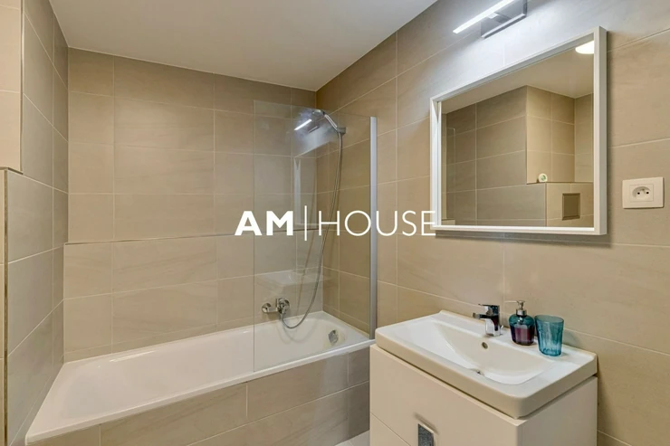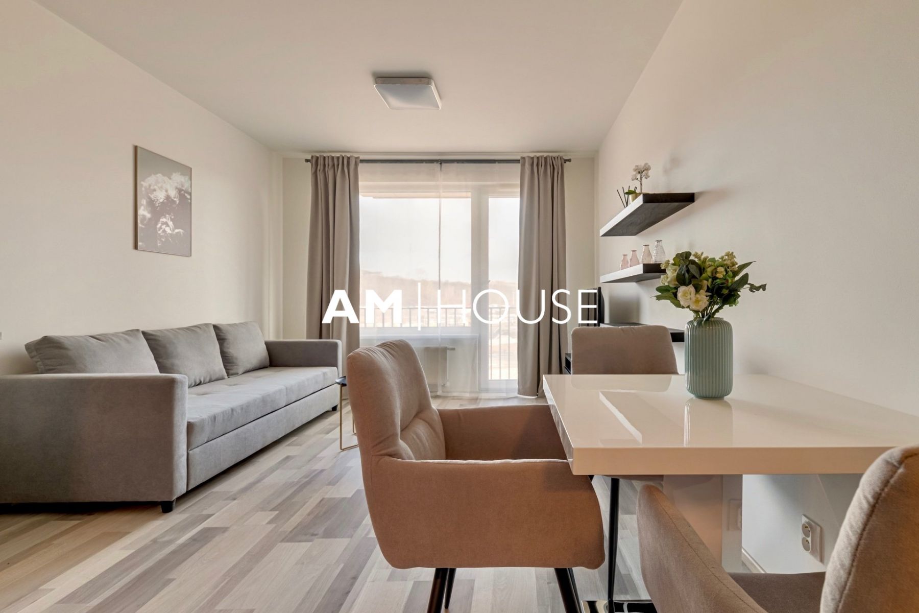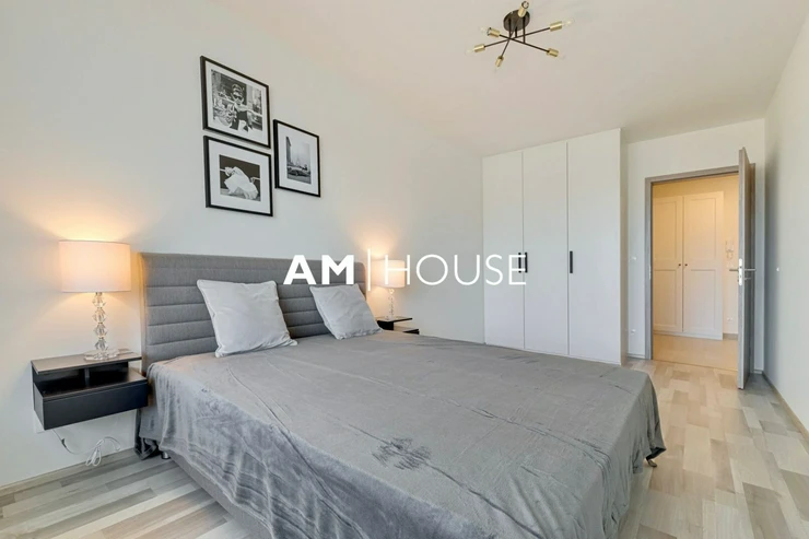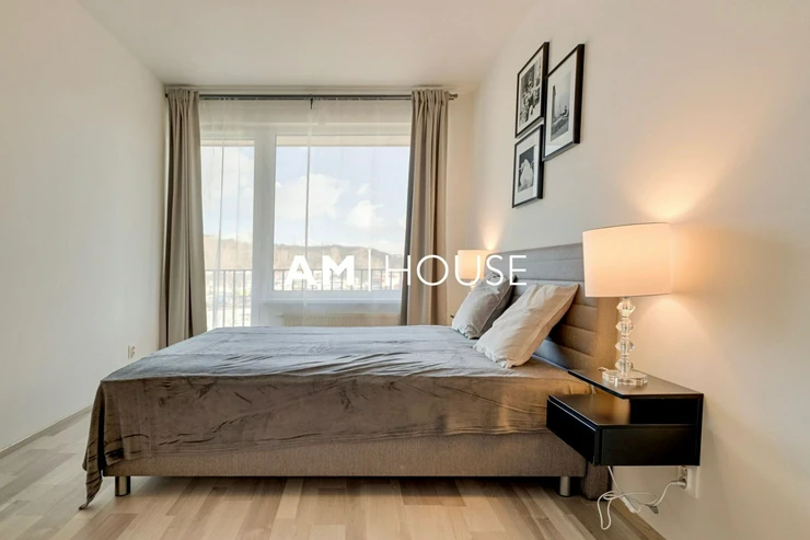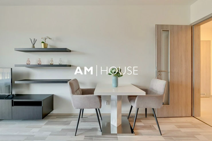 Am House offers a modern, fully furnished 1-bedroom apartment (2+kk layout) with a total floor area of 64 m for long-term rent. The apartment is located on the 3rd floor of a newly built residential building.