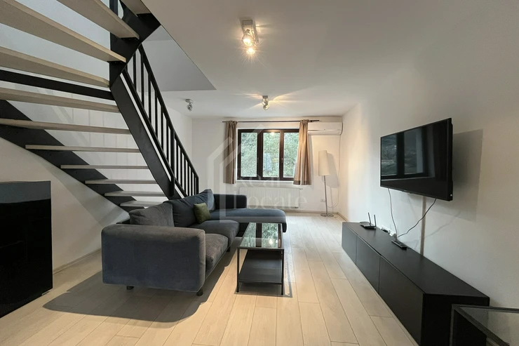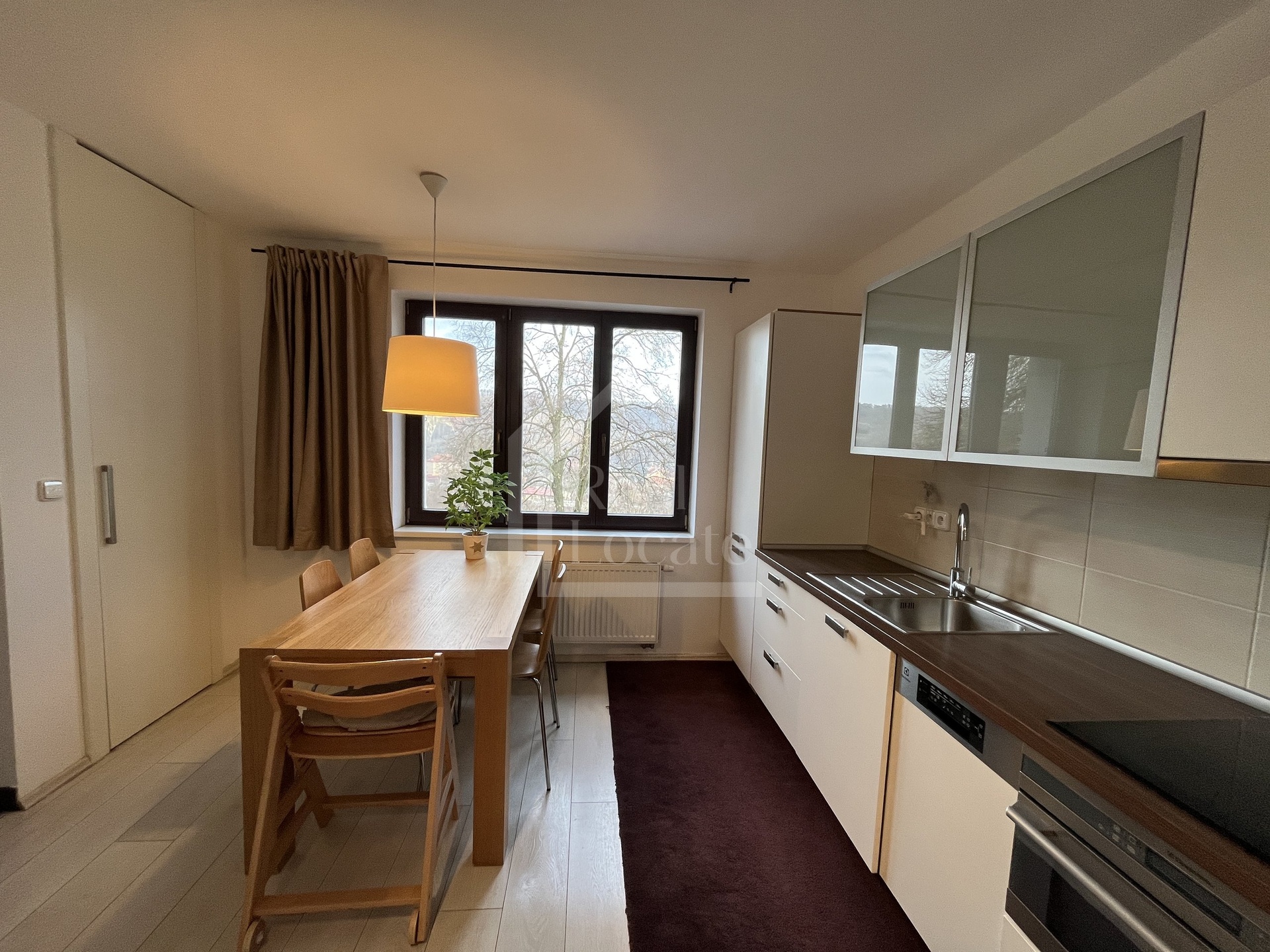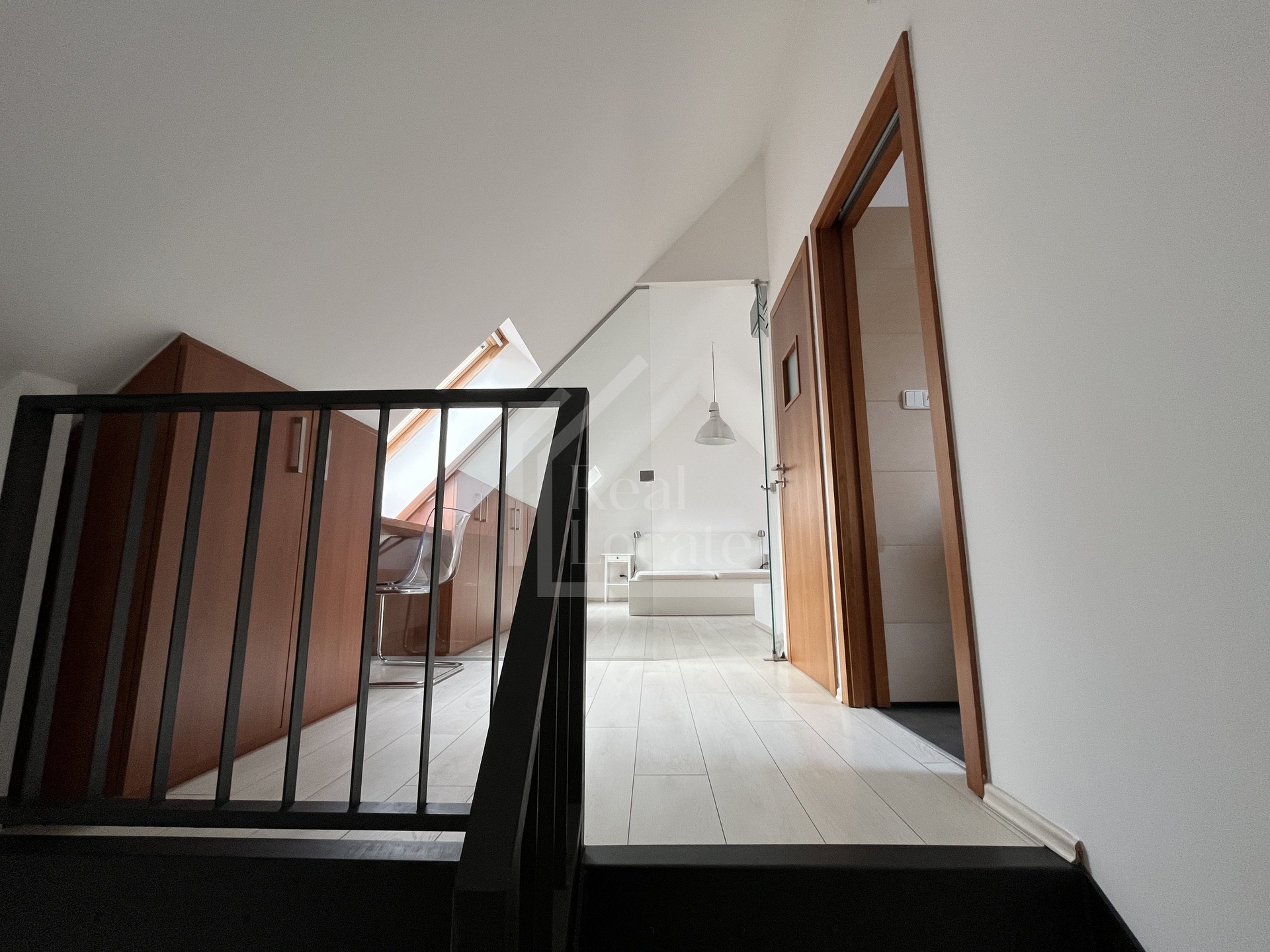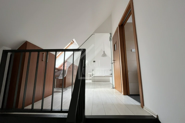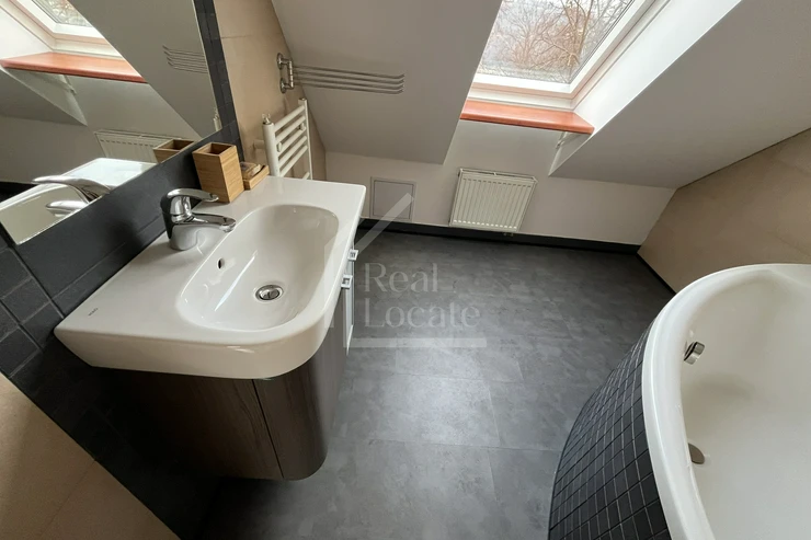 Modern partially furnished duplex apartment 2+kk (72 m²) after complete renovation, with air conditioning, located in a quiet area with excellent transport accessibility – close to the V Bokách bus stop and Geologická tram stop.