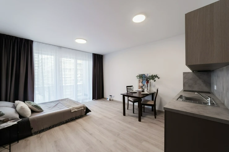 Nabízíme byt 1+kk s lodžií a sklepem umístěný ve 2. patře (3. nadzemní podlaží) projektu Harfa Living jedná se o čerstvou novostavbu z roku 2026 a byt je v perfektním stavu.