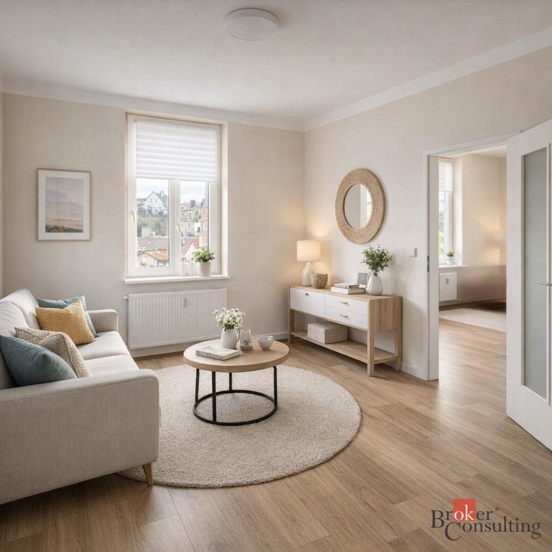* a bright living room with plenty of space for relaxation and work