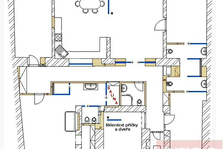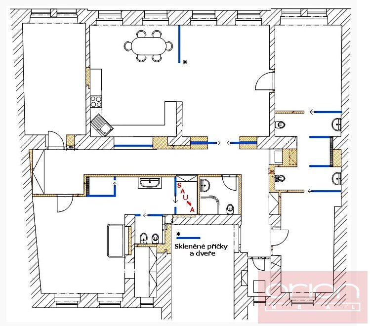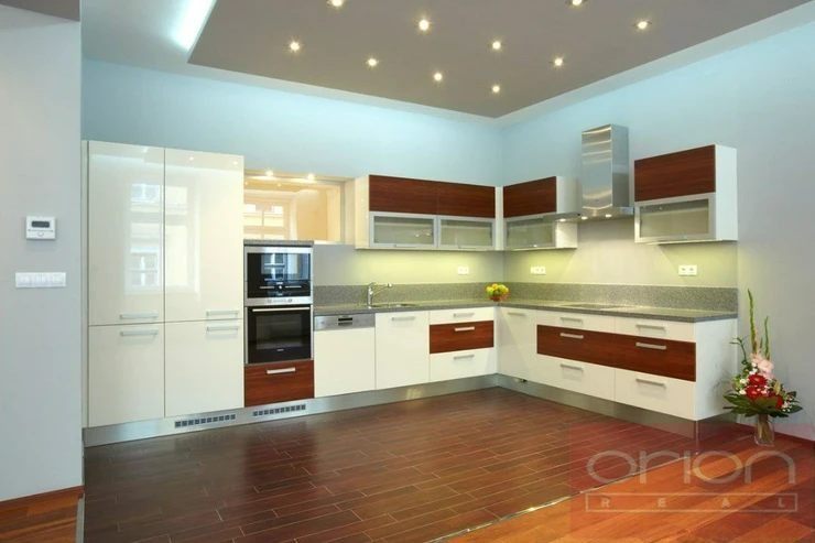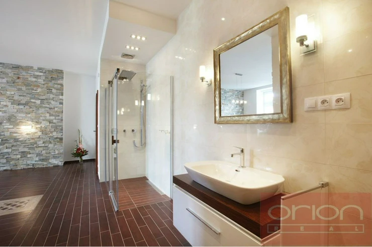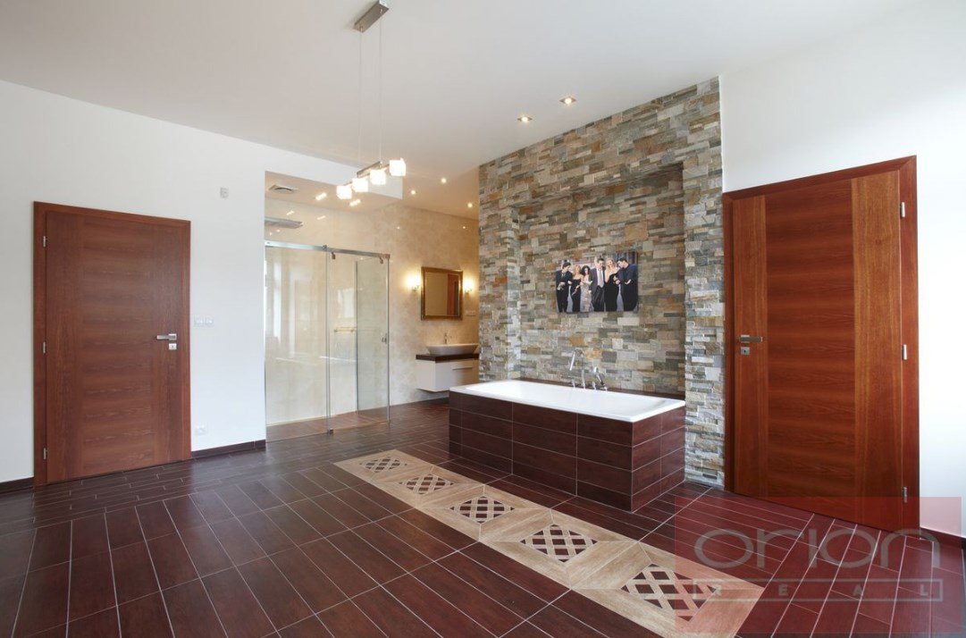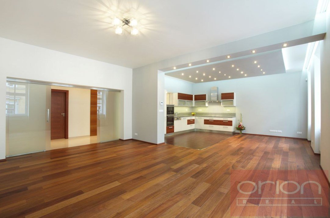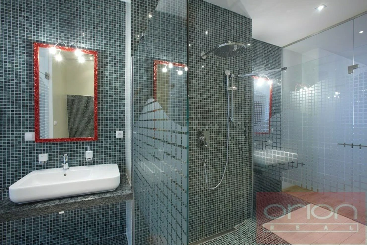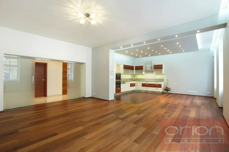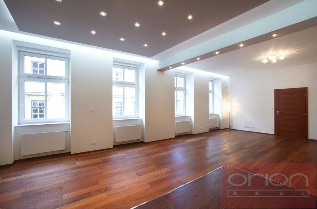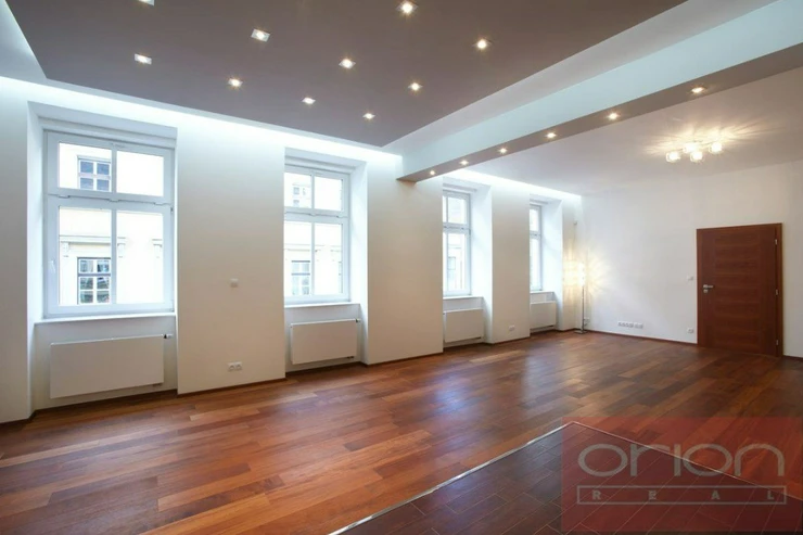 We offer for rent a luxury four bedroom apartment on the 3rd floor of a renovated house with an elevator in the sought-after location of Prague 5 - Smíchov. The partially furnished apartment has a total area of 181 sqm and offers an entrance hall, a fully equipped kitchen with a dining room open to a spacious living room, 4 bedrooms - one of which has a dressing room and a bathroom (shower, toilet, bidet, sauna), 2 bathrooms with a shower and toilet, a study, a utility room with a washing machine and a dryer. The floors are parquet and tiled. The apartment is equipped with air conditioning, built-in wardrobes and a security system. The house is located in a quiet street just a few steps from a tram stop, a few minutes to the Anděl metro station, the Nový Smíchov shopping center. The French Lyceum and Petřínské sady are within walking distance.
