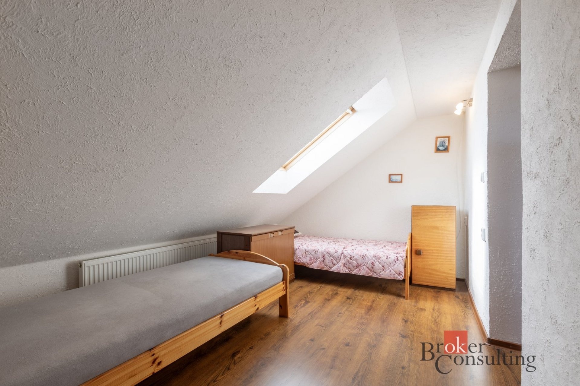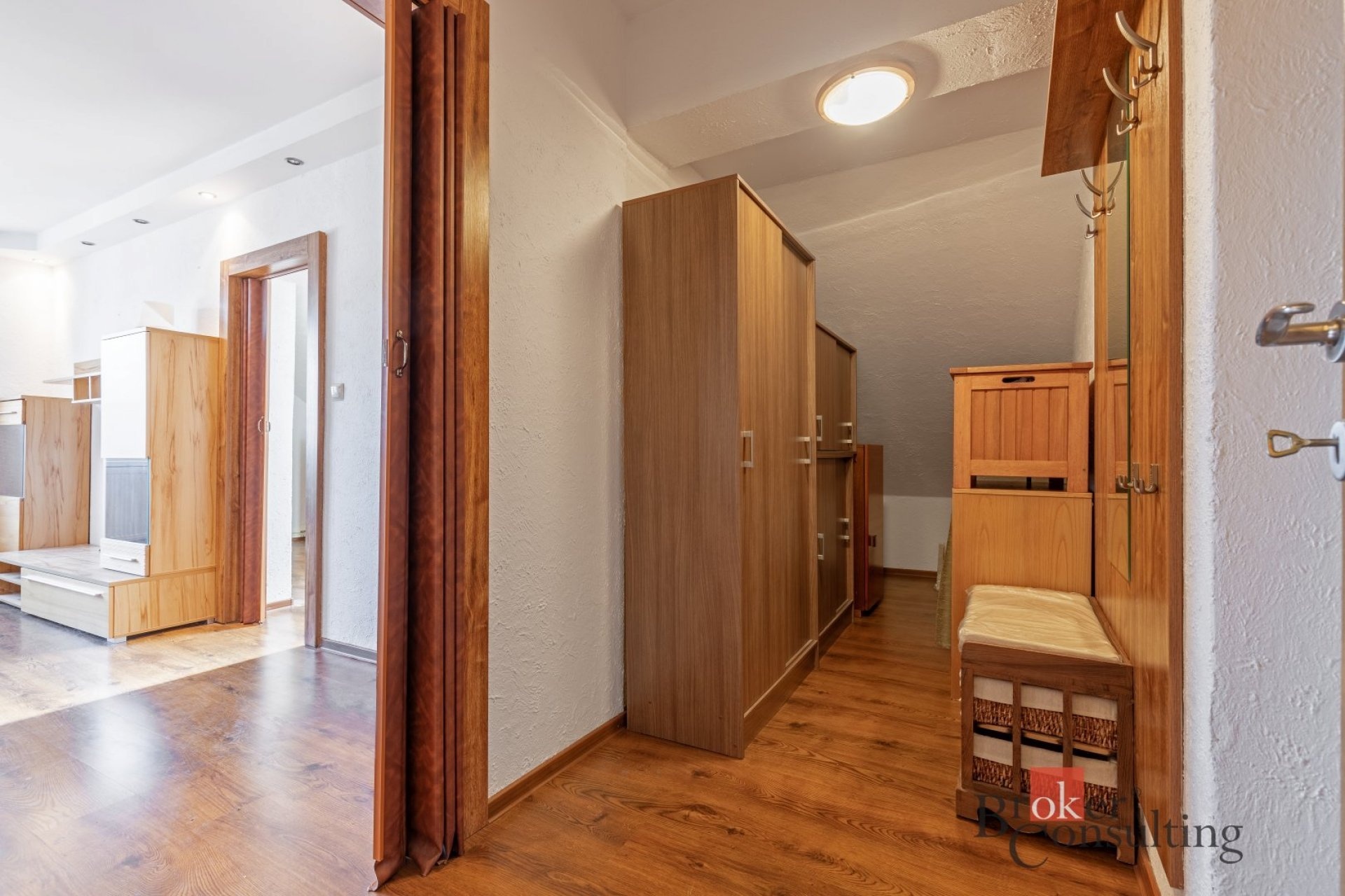 Byt je světlý, vzdušný a díky podkrovnímu řešení působí velmi příjemným dojmem. Součástí je prostorný obývací pokoj s kuchyňským koutem, samostatná ložnice a koupelna s vanou a toaletou.