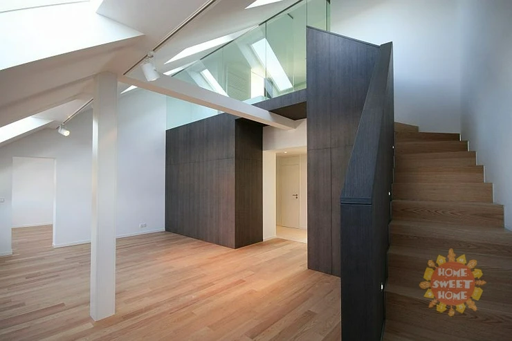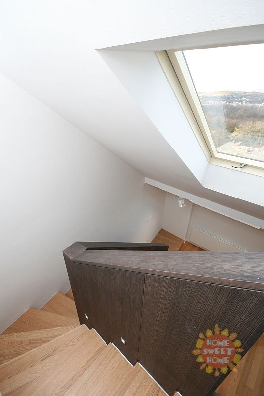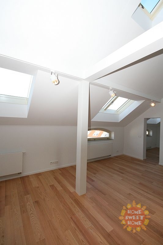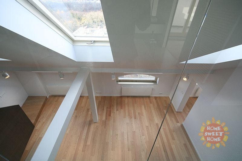 We offer for rent a bright unfurnished duplex apartment 3+1 (130 sqm). The apartment is located on the fifth above-ground floor of a historic apartment building with an elevator in the popular locality of Prague 7 - Bubeneč, U Akademie Street. The apartment is located directly at the entrance to Stromovka park.