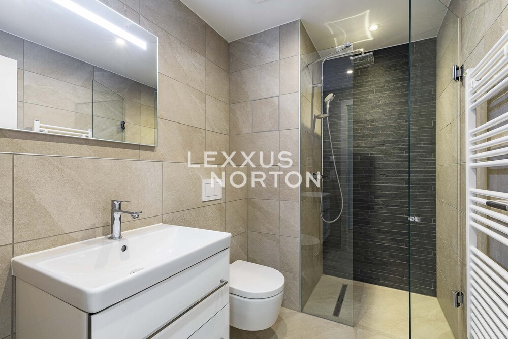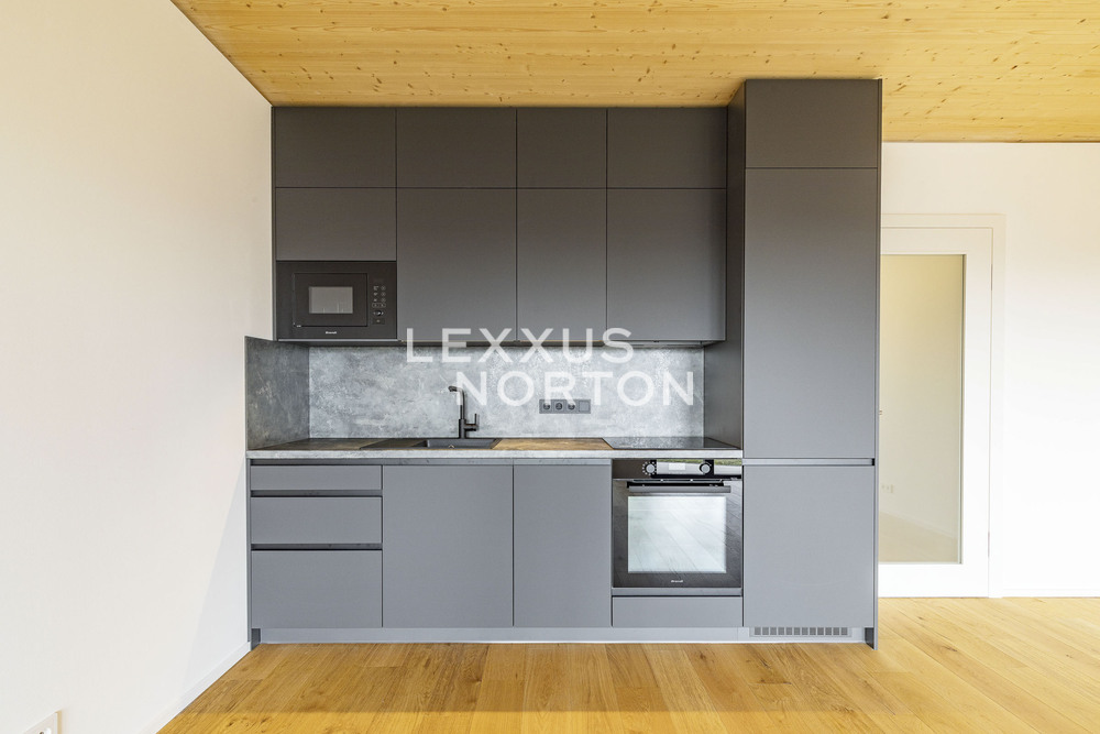 We are offering for rent an unfurnished, brand-new, never-before-occupied modern studio apartment measuring 41.3 sqm with a 26.9 sqm garden, located on the ground floor of a building in the Timber Praha complex, which features an elevator. The property is located in the beautiful Stodulky neighborhood of Prague 5, which offers all amenities and excellent transportation infrastructure.The apartment features a entrance hall, a living room with a kitchenette, a bathroom, storage room, and a garden (26.9 sqm) with a terrace (12 sqm). A storage unit (2.7 sqm) and a garage parking space are included. The kitchenette is equipped with an induction cooktop, an oven, a refrigerator with a freezer, a microwave, and a dishwasher. The entryway has a built-in closet. The apartment also features a modern Loxone smart home system, which allows, among other things, for smart control of exterior blinds, regulation of underfloor heating and cooling in each room, and monitoring of water and energy consumption.The neighborhood consists mainly of new apartment buildings and offers excellent transportation access. There is a bus stop right at the building’s entrance, and the Stodulky metro station is within walking distance. By car, you can reach the highway in 3 minutes, Vaclav Havel International Airport in 12 minutes, and the Metropole Zlicin shopping and entertainment center in 5 minutes. The area offers all necessary amenities—kindergartens, elementary schools, a high school, restaurants, supermarkets, pharmacies, a health clinic, playgrounds, and a post office. For leisure activities, you can enjoy the nearby Toboga Fantasy Park, Form Factory fitness center, a basketball arena, soccer and volleyball fields, tennis courts, outdoor gyms, and bike paths. You can go for a walk in Panska Garden, through the Motolsky Stream valley, or take a bike ride to Stodulecky Pond.The inquiring client agrees to pay a commission of 1 month's rent plus VAT.If you are unable to view the property in person, we also offer a video tour from the comfort of your home in real time via Messenger, WhatsApp, and other communication platforms.