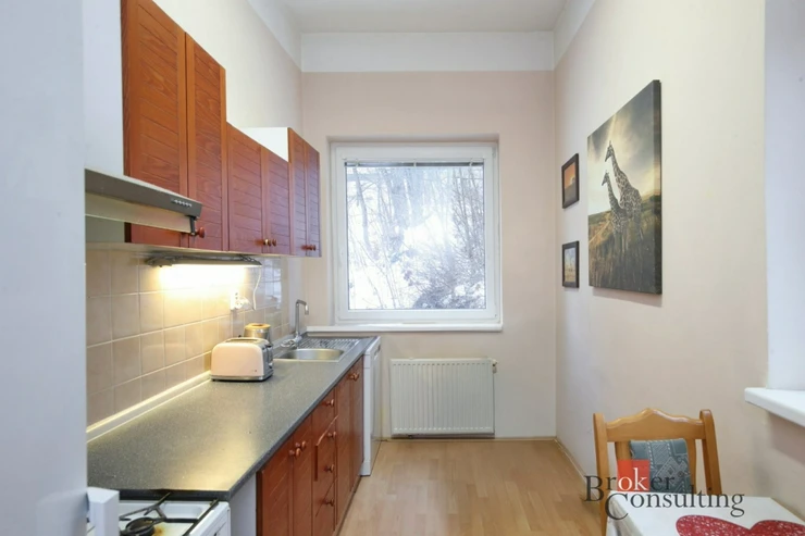 Byt zaujme především nadstandardní výměrou na dispozici 1+1 a přehledným uspořádáním místností. Dominantou bytu je prostorný obytný pokoj, který nabízí dostatek místa pro obývací i klidovou část. Samostatná kuchyň umožňuje pohodlné stravování i pracovní kout. Dispozici dále tvoří předsíň, koupelna a samostatné WC . Celkové řešení bytu je praktické a dobře využitelné.