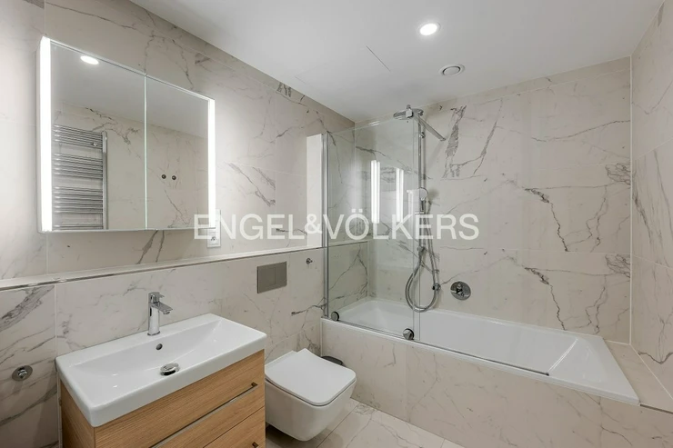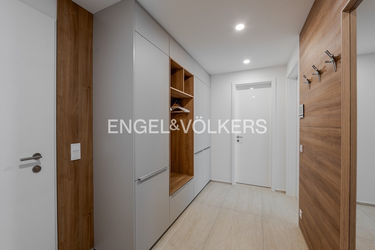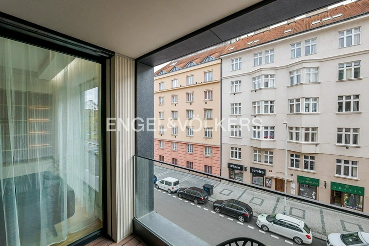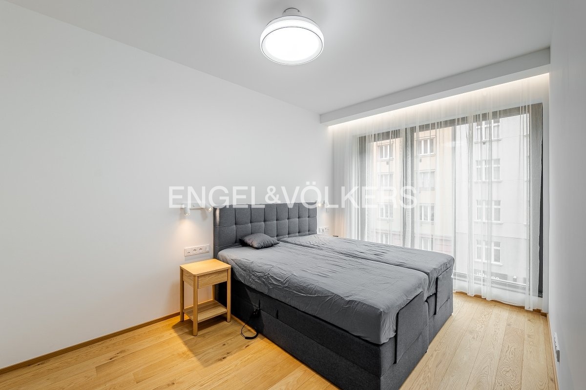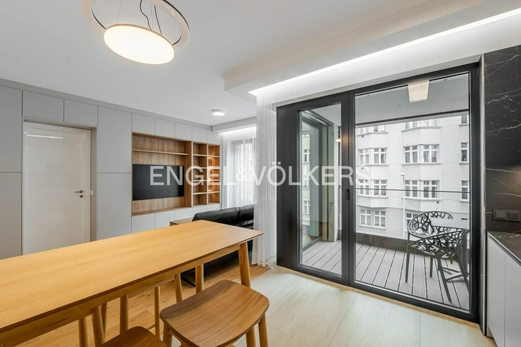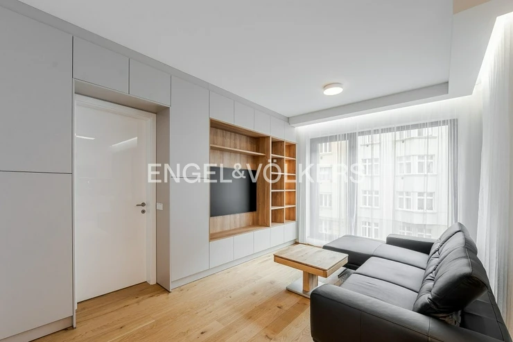 We are offering a modernly furnished 2+kt apartment (57.5 m²) for long-term rent, located on the 2nd floor of the prestigious Victoria Palace residence on Vítězné Náměstí.