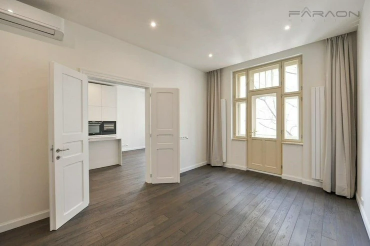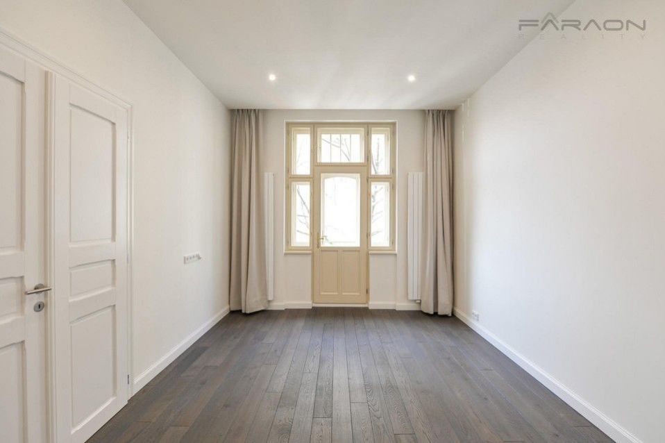 Brand new, luxurious apartment 4kk, 161m21 in a completely renovated apartment building with a parking space and an elevator, with original features preserved. Attractive and desired location directly on Jiřího z Poděbrad Square within a minute's distance to metro (Jiřího z Poděbrad metro station) and tram connections, with all the amenities in place.
