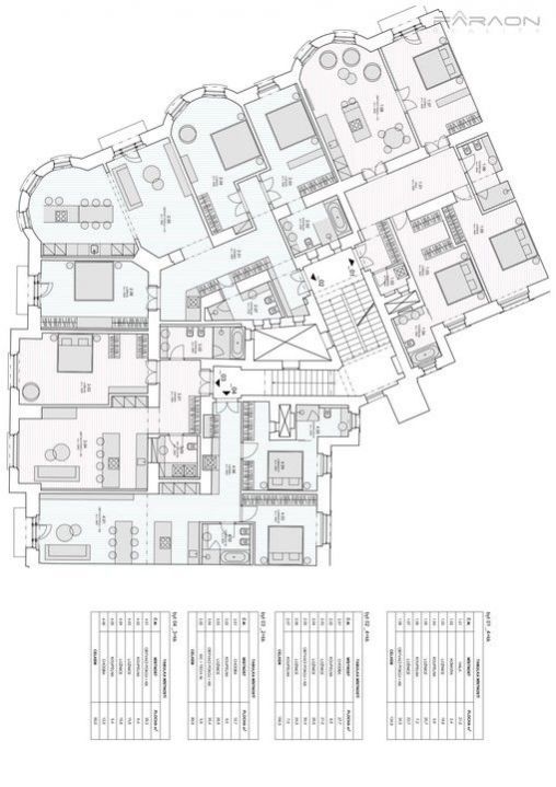 The interior of the apartment consists of open living room with fully equipped kitchen and dining area, master bedroom with spacious dressing room and sun suite bathroom with bath, second bedroom with dressing room, bedroom oriented to a quietly landscaped courtyard, another bathroom with shower, entrance hall with wardrobes , utility room.