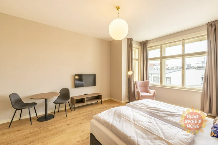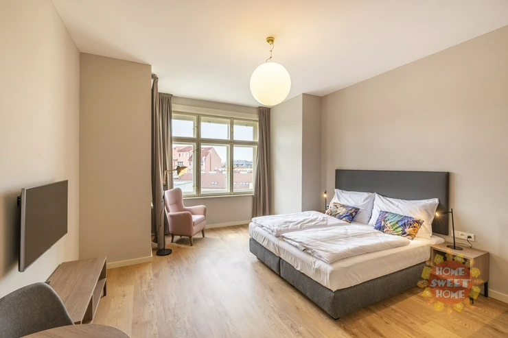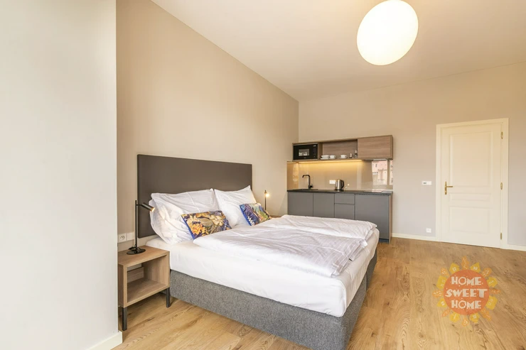 Modern furnished apartment 1+kt after complete reconstruction with a total area of 30 square meters is located on the fifth floor of a brick building with an elevator in a newly renovated house from 2021 in the street Opletalova, New Town. The residence is located in a very popular location, about 100 meters from Wenceslas Square.