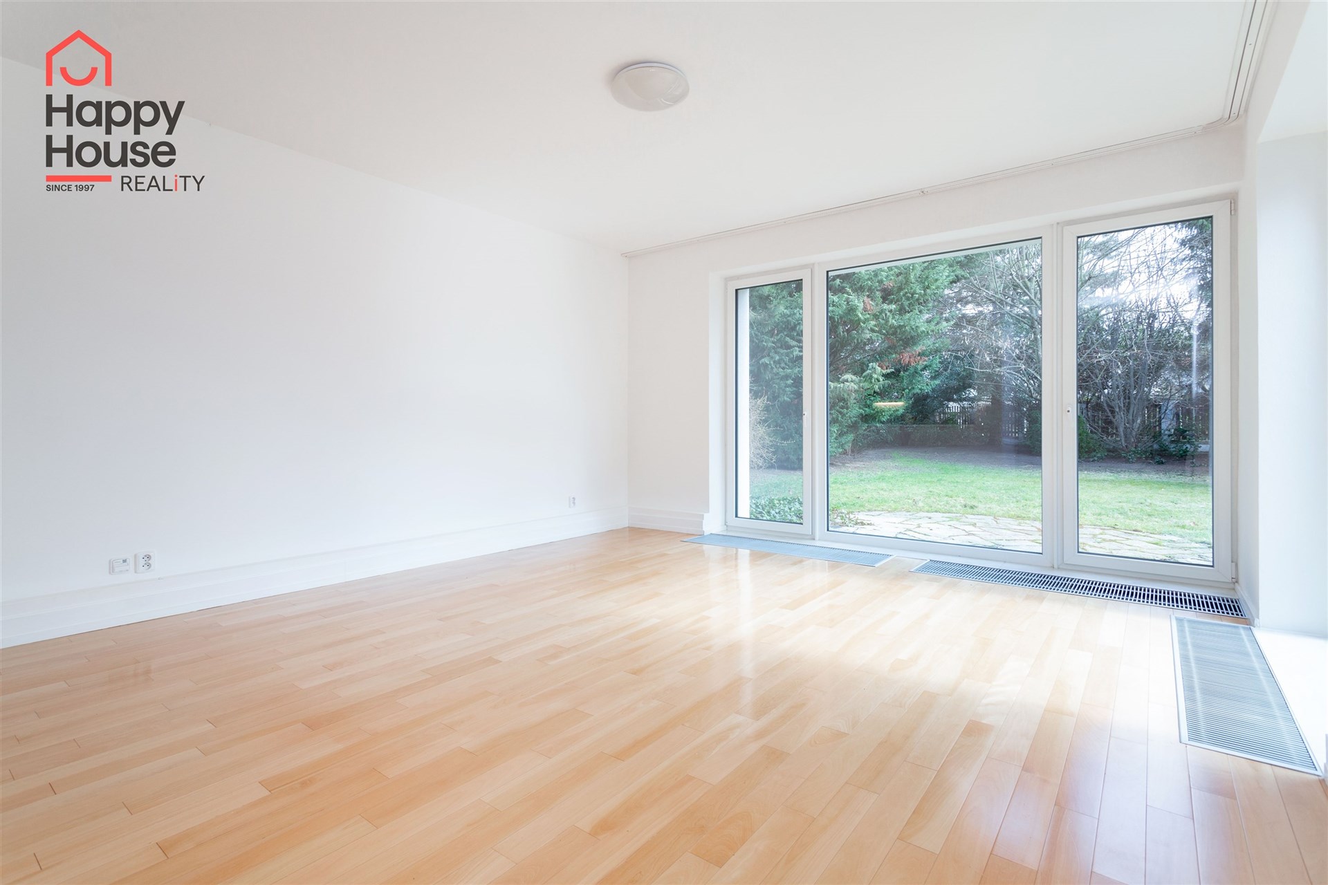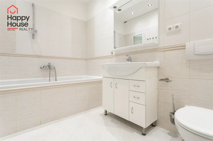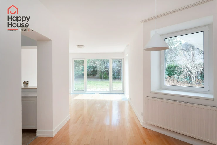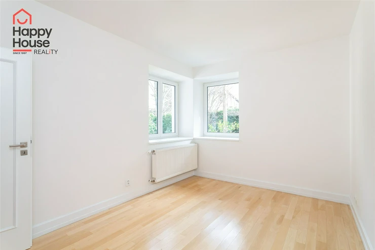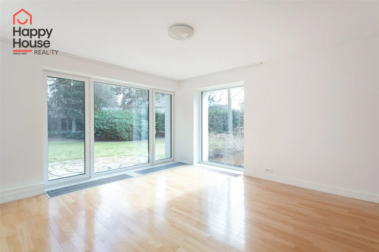 We offer for rent a beautiful, bright, unfurnished two-bedroom apartment (120 sqm) on the ground floor of a family house with a private mature garden (600 sqm), terrace (15 sqm), garage and cellar in the popular area of West Prague in Průhonice, with excellent connections to Prague via the D1 motorway and a regular bus service. The kitchen unit comes with kitchen unit, a refrigerator with a freezer, a cooktop, an electric oven, a dishwasher, and an extractor hood. The bathroom includes a bathtub with a screen and a toilet, with an additional separate toilet. From the living room, there is access to the terrace and the mature garden. Telephone and internet are available. The flooring consists of laminate floating floors and tiles. Gas heater/boiler in the apartment. The house is completely insulated, so the energy consumption is minimal. The BEPC certificate the estimated class is B.