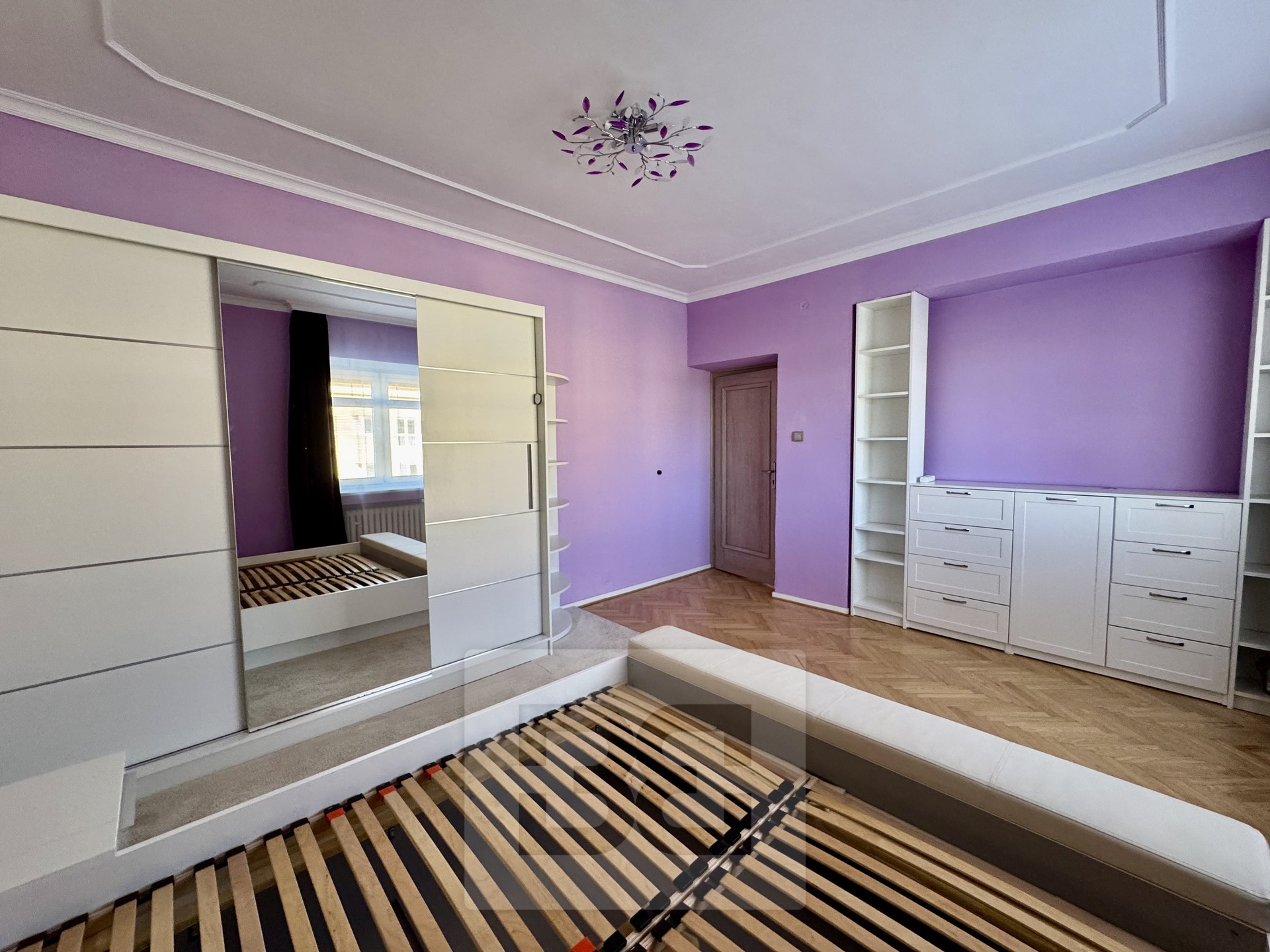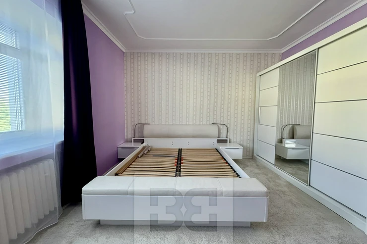 The living room is spacious and offers plenty of light and a beautiful view to the east. The master bedroom with a wardrobe, bed, and dressers faces northwest, while the third room can serve as a children's room or study.