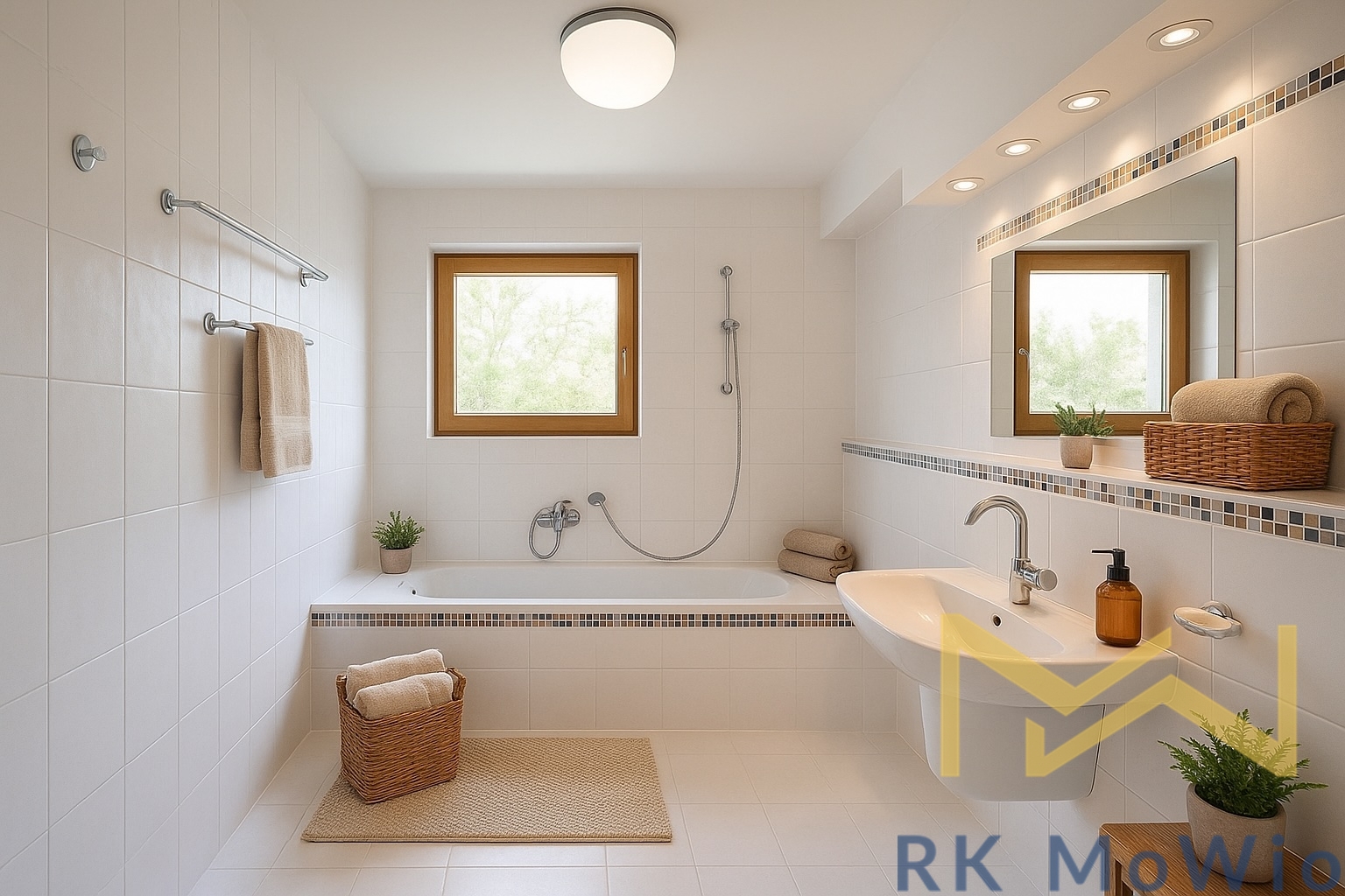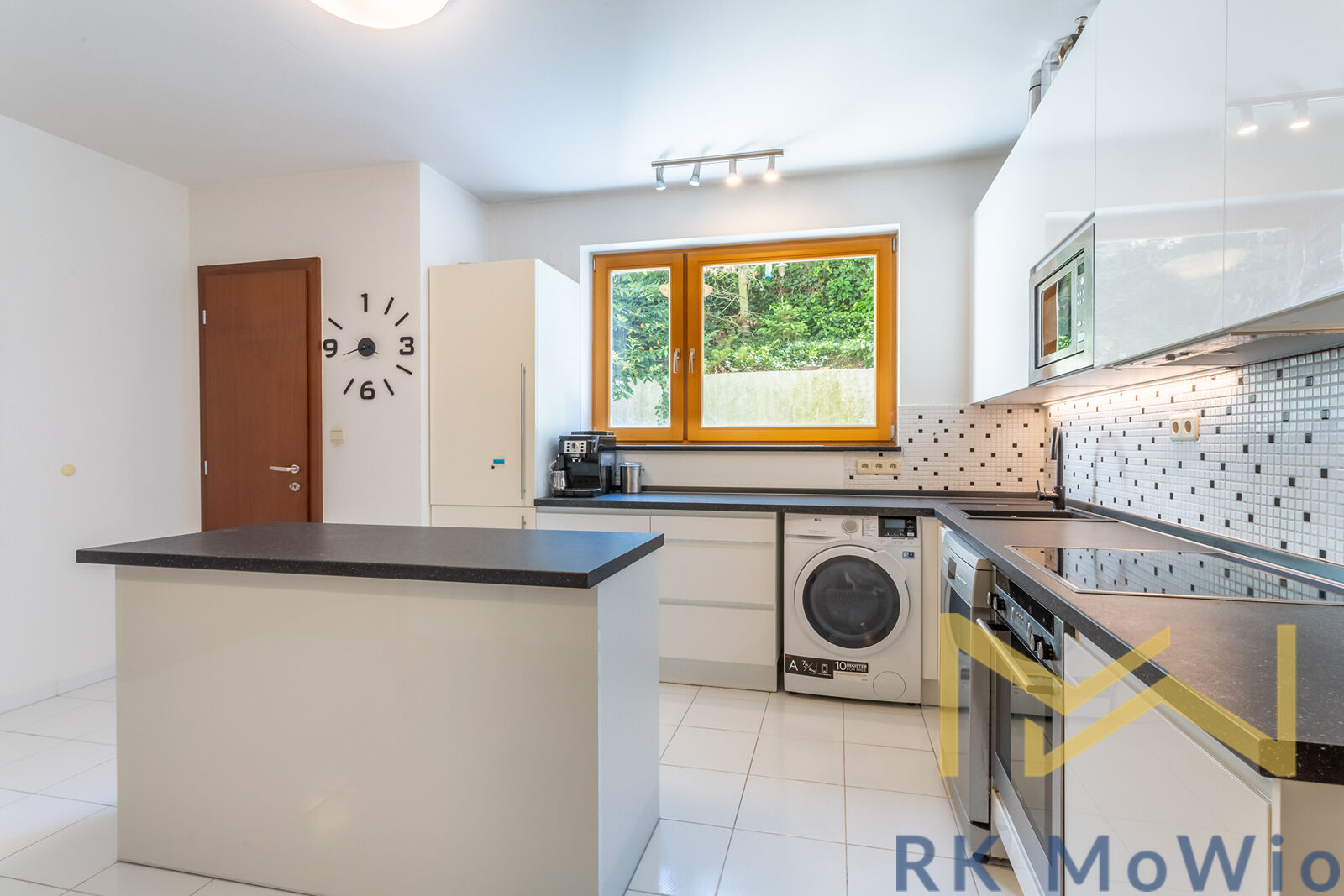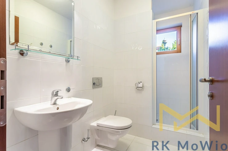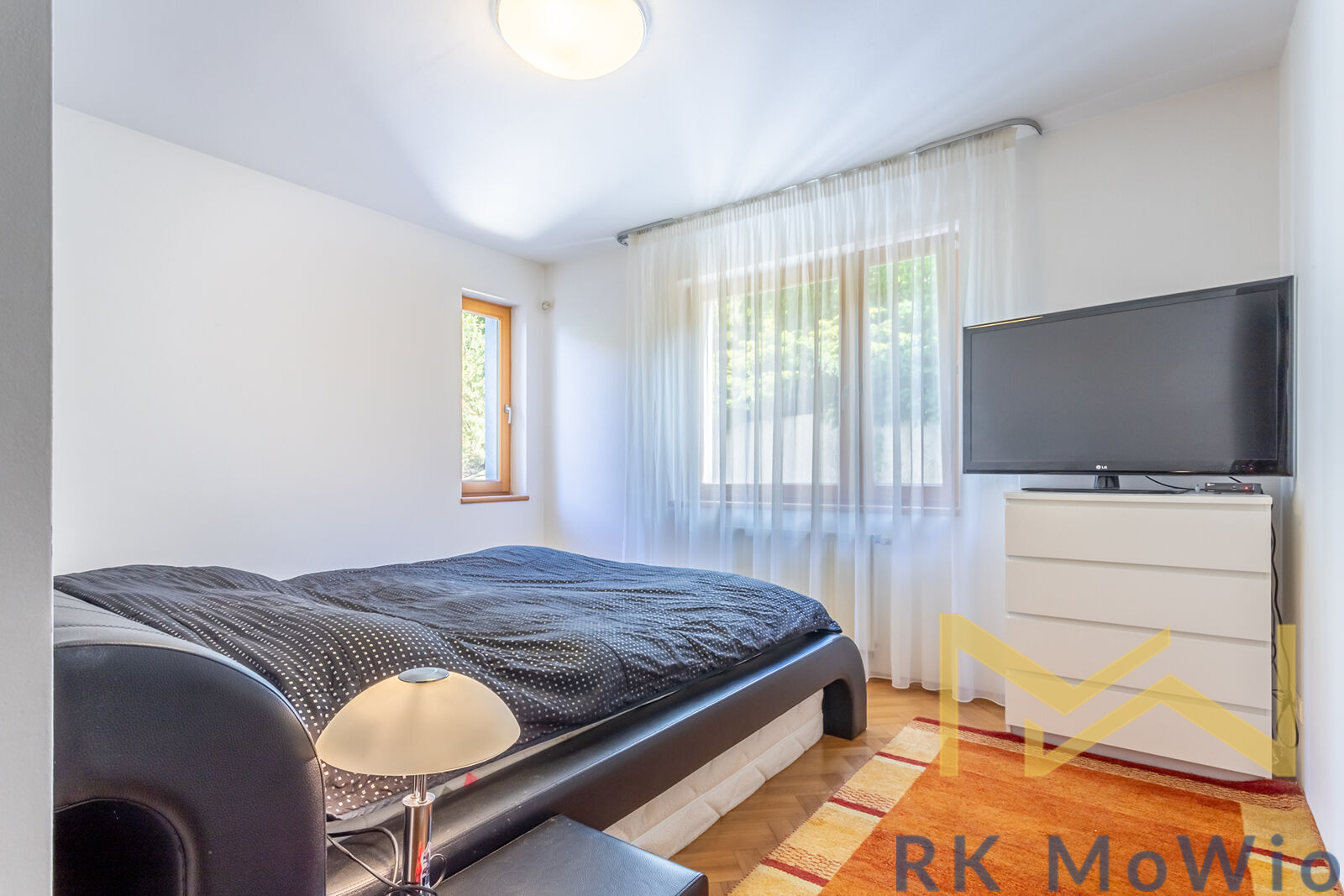 The floor plan of the apartment includes an entrance hall, a spacious living room with access to the balcony and a dining area, a separate kitchen and pantry, 4 bedrooms, 2 bathrooms (1 with a bathtub and sink, 1 with a shower, sink and toilet) and an extra toilet. Apartment amenities: kitchen (including refrigerator with freezer, ceramic hob, extractor hood, dishwasher, electric and microwave ovens, washing machine with dryer), built-in wardrobes, security doors, large windows, wooden floors and tiles. The rent includes a cellar and one parking space, with a second parking space available at an additional cost.
