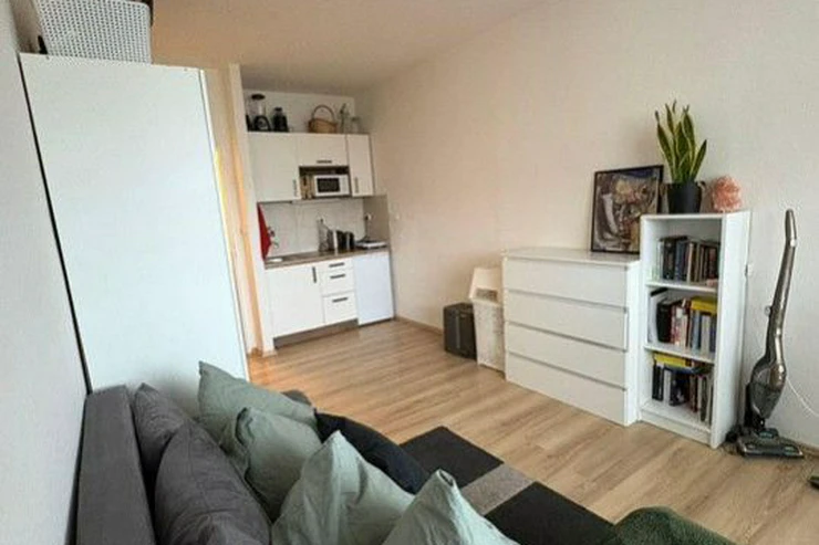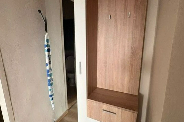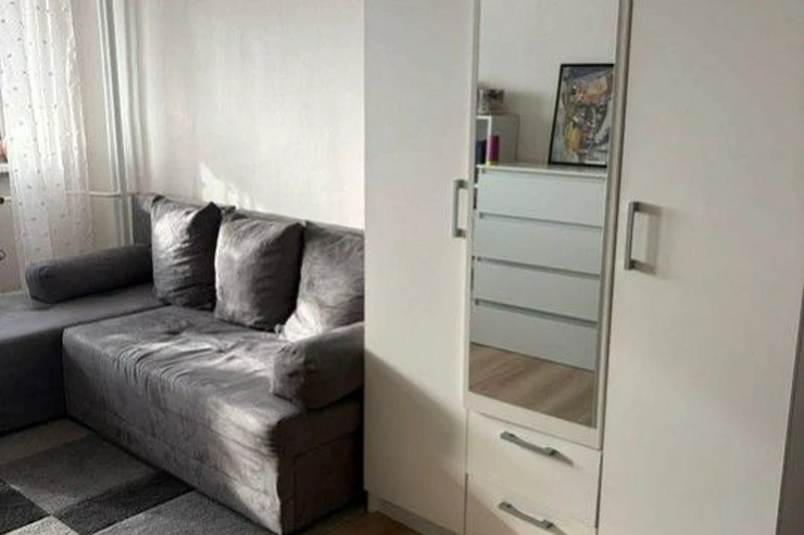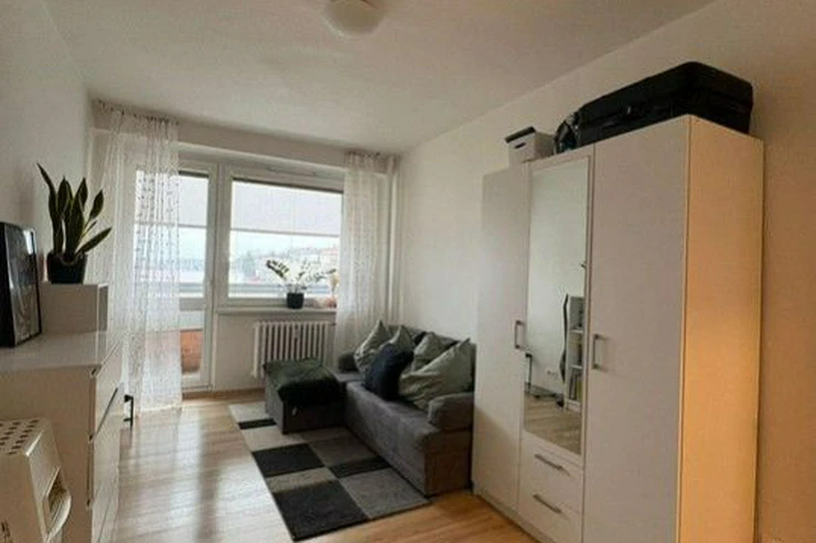 The apartment is suitable for one person only, the living room has an area of approximately 16 m2, the width of the room is 2.85 m, the length of the free space from the balcony to the kitchen unit is approximately 5.5 m.