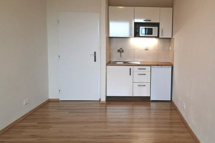Rent a small studio apartment of 21 m2 on the 9th floor of a brick house in Michle. The apartment includes a glazed loggia of approximately 2.5 m2 and a small cellar.