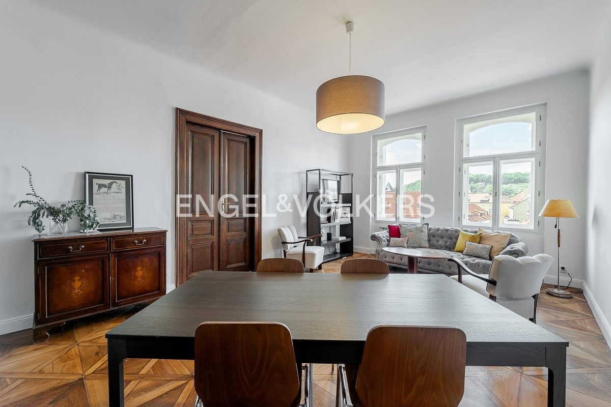 For rent, we offer you a spacious, fully furnished apartment with a layout of 3+1 in the heart of the Old Town. On the 3rd floor of a historic apartment building with a lift to the mezzanine floor, there is an apartment of 91 sqm.
