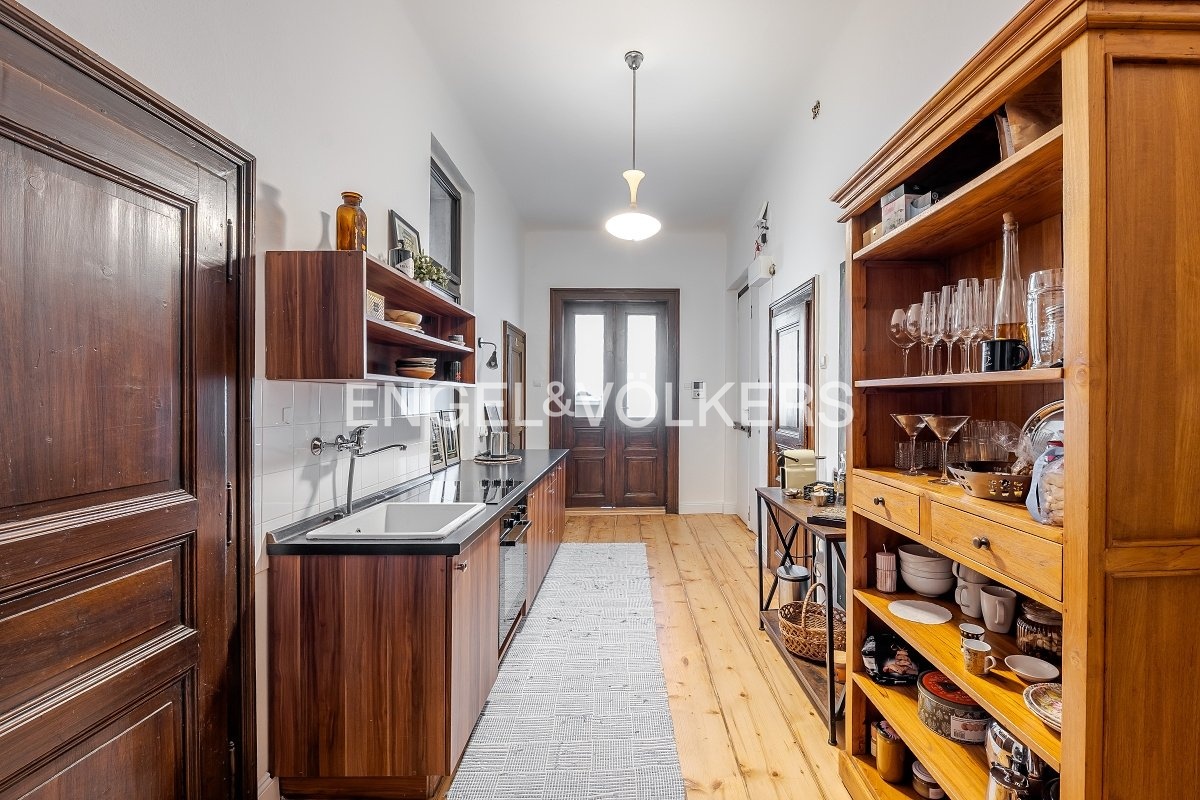 The interior of the apartment consists of an entrance hall with a kitchenette fully equipped with appliances, a living room with a dining area and with beautiful views of the historic buildings of the Old Town. Furthermore, the apartment has two bedrooms, one with a study and the other with a dressing room and orientation to the courtyard of the house. There is also a bathroom with a shower and a washing machine hidden in built-in furniture, and a separate toilet with access from the hallway. The bonus is a spacious pantry and cellar. The apartment is rented fully furnished with designer furniture.