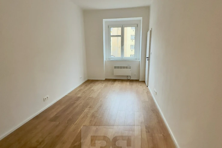 We offer for rent an apartment after complete reconstruction, located on the 2nd floor of a building without an elevator, in the street Křížová - Smíchov. The apartment consists of a spacious entrance hall, a separate toilet, a bathroom with a bathtub, a living room with a kitchenette, which is not yet fully finished, see the photo, and a bedroom with a window facing the quiet courtyard. A closet belongs to the bedroom. The apartment has a cellar of 2 m².