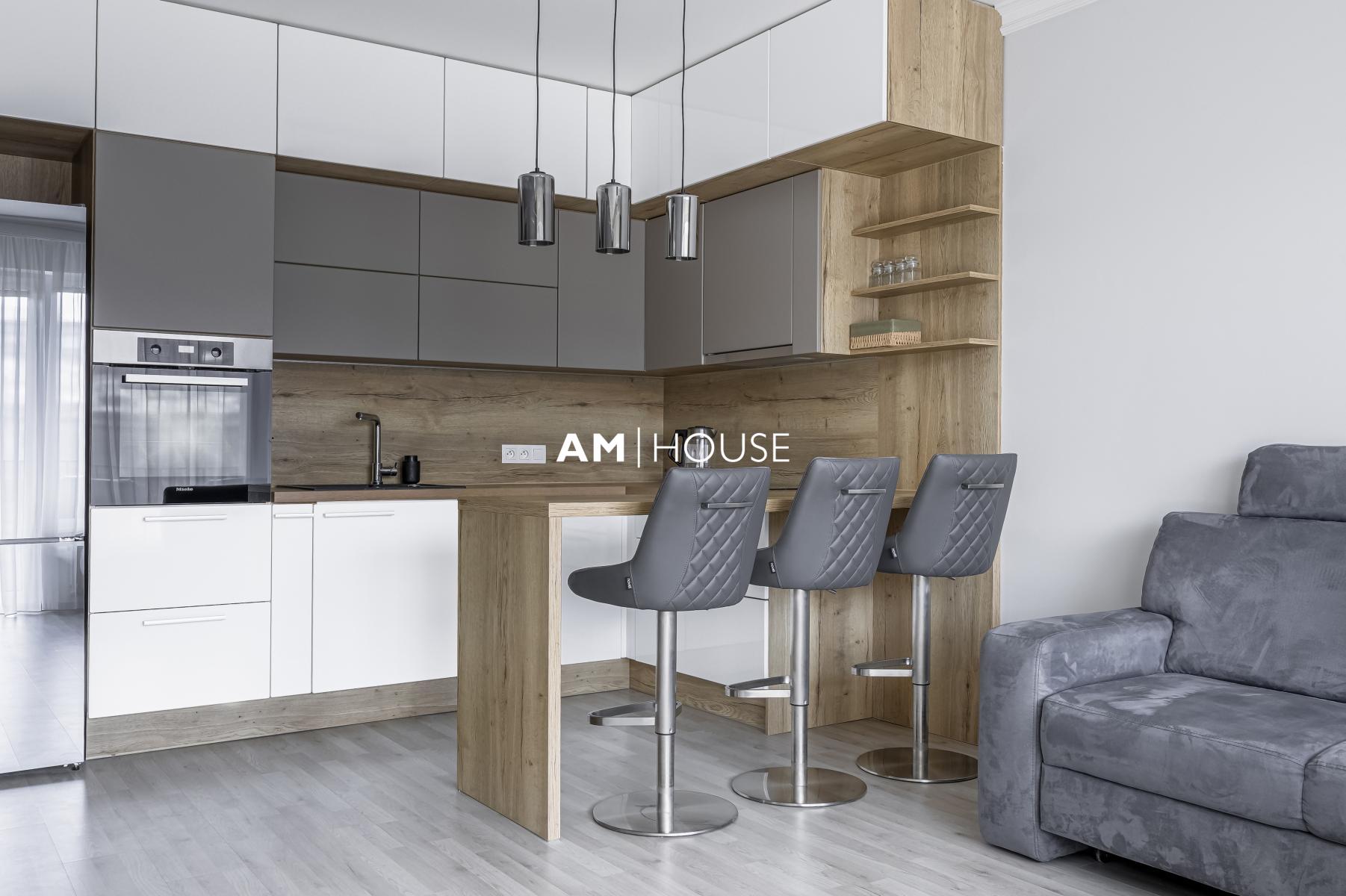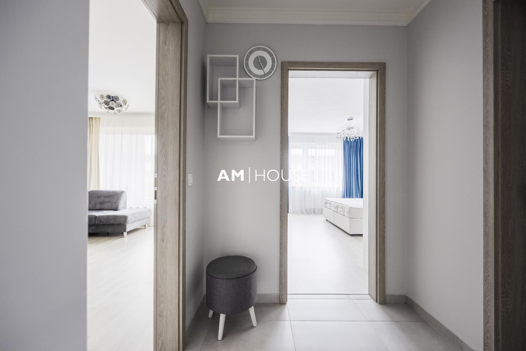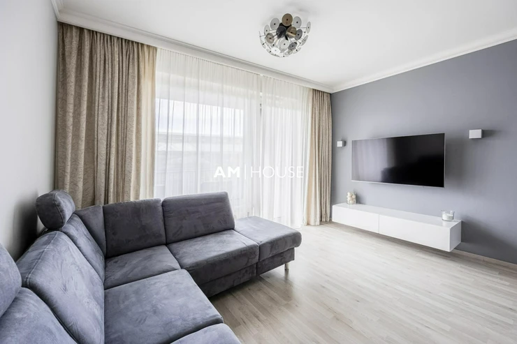 Kompletně zařízený a stylový byt se nachází v 3. nadzemním podlaží novostavby. Byt je kompletně zařízený včetně kuchyňského koutu a spotřebiče.