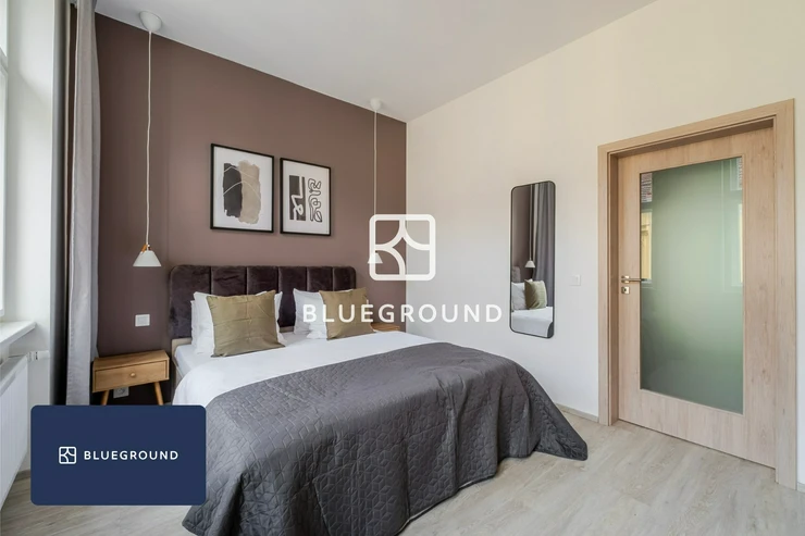 Blueground offers a fully furnished and equipped 2kk apartment in the quiet Nusle district of Prague 4, available for stays of one month or longer. The apartment is located in a peaceful residential area with quick access to the city center. With nearby parks, cafés, and local spots to explore, this apartment is an excellent choice for professionals or couples seeking a quiet, comfortable, and well-connected place to call home.