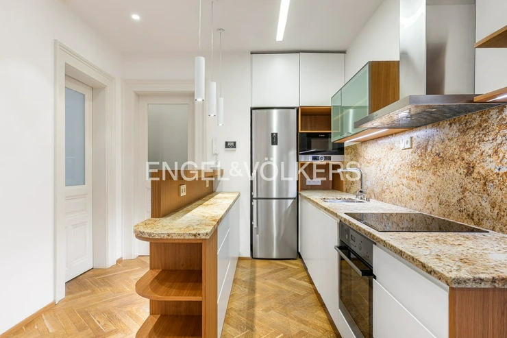 The apartment has been renovated (wooden floors, new windows, security doors) and offers a high standard of living. The apartment includes a parking space in the yard and a brick cellar of approx. 5.6 sqm. The location offers pleasant living in one of the most desirable parts of Vinohrady with all civic amenities within reach. In the immediate vicinity, you will find the Jiřího z Poděbrad metro station, tram stops, parks, and popular farmers' markets.