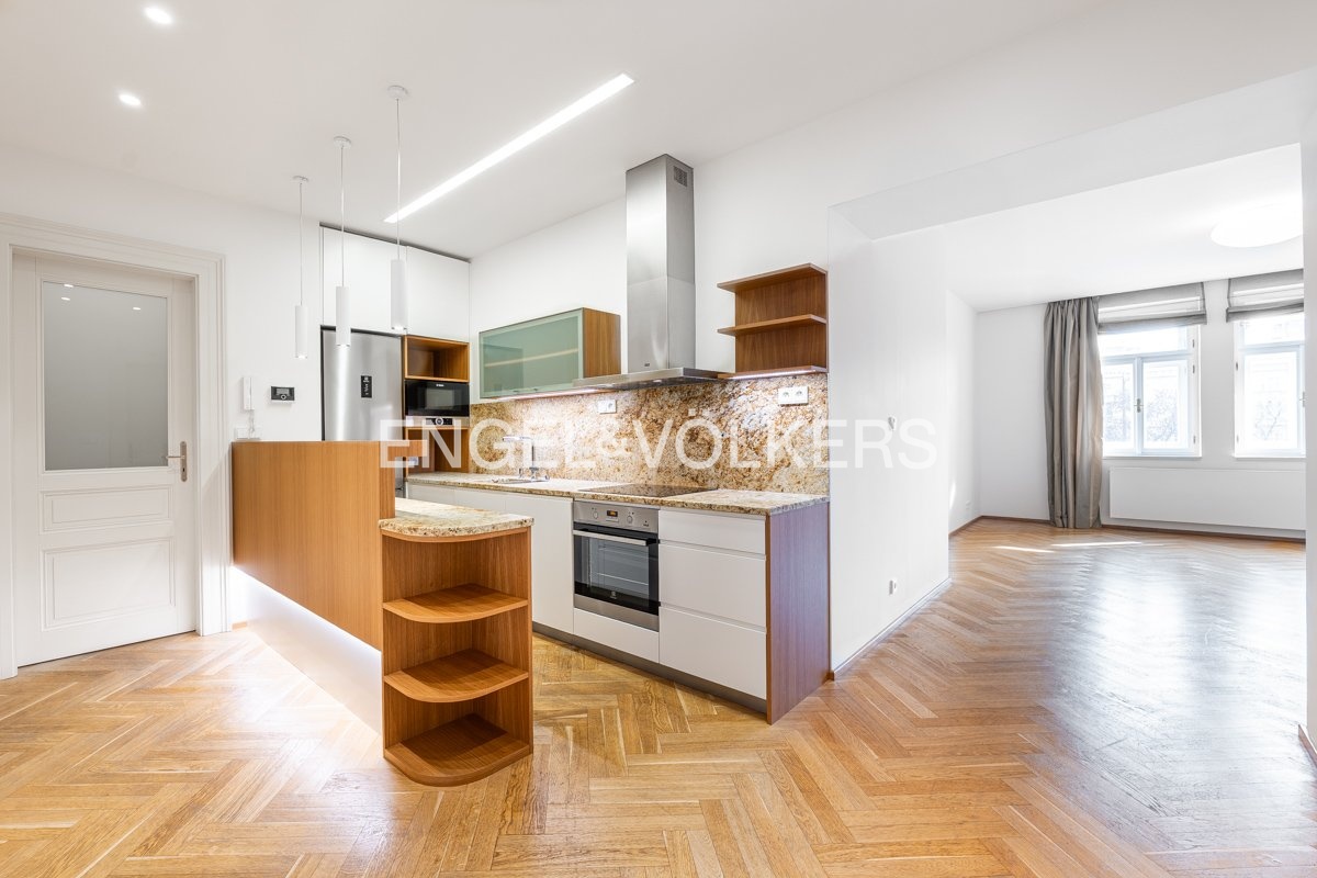 We offer for rent a renovated, very bright 3+kt apartment with an area of 94 sqm, situated on the 5th floor of a renovated Art Nouveau building with an elevator in Vinohrady.