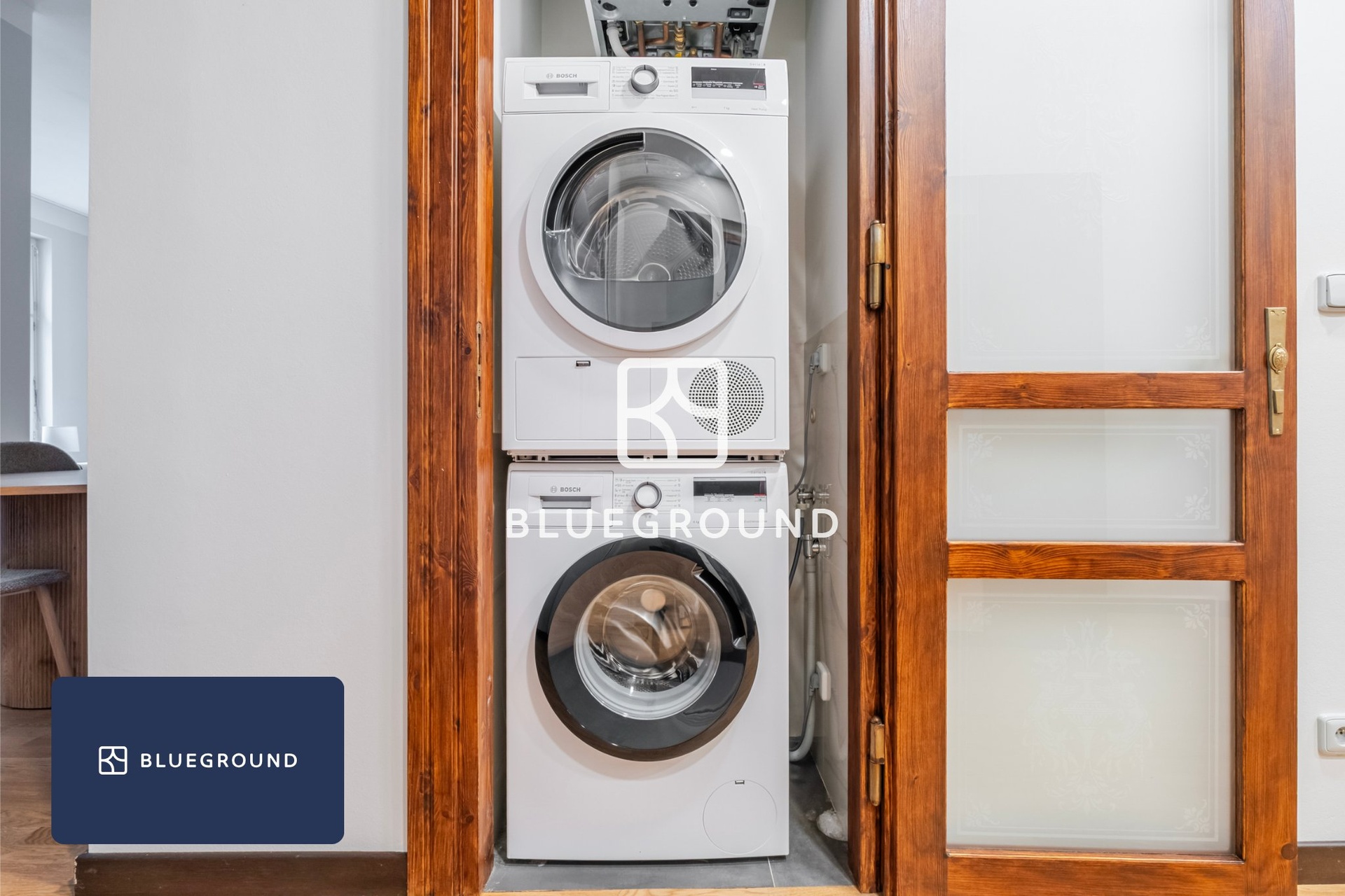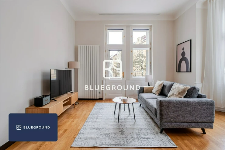 Blueground offers a spacious 84 m² 4+kk apartment in the heart of the Jiřího z Poděbrad area, designed for both productive and comfortable living. Enjoy flexible stays from one month to a year, dedicated workspaces, high-speed Wi-Fi, and an atmosphere that reflects the charm of this historic neighborhood.