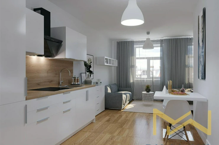 We offer for rent a unique furnished studio apartment (1-bedroom) with a total floor area of 56 sqm, situated on the 6th floor (7th above-ground level) of a residential project with an elevator in Prague 1 – Nové Město. The apartment offers comfortable city living in the very center of Prague with excellent access to all services.