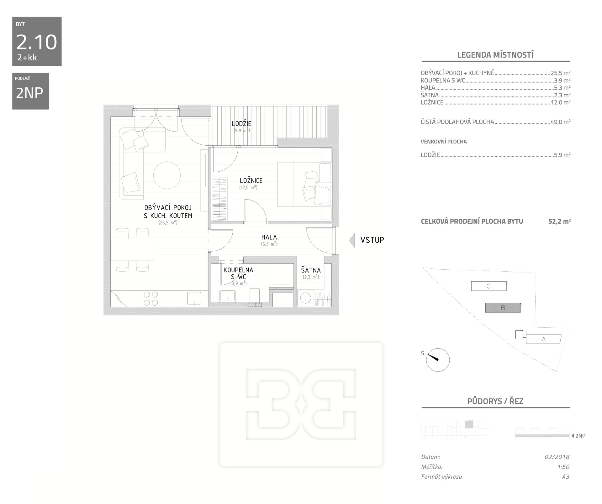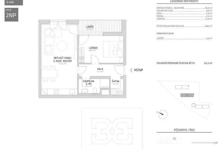 We offer for long-term sublease a very nice 1-bedroom apartment (2+kk, 52,2 m²) with a west-facing loggia (6 m²), located in the Bleriot residential project by TE Development in Prague 9 – Kbely, Plzákova Street, building No. 8. A spacious garage parking space is included in the rent.