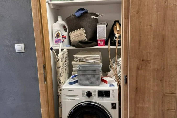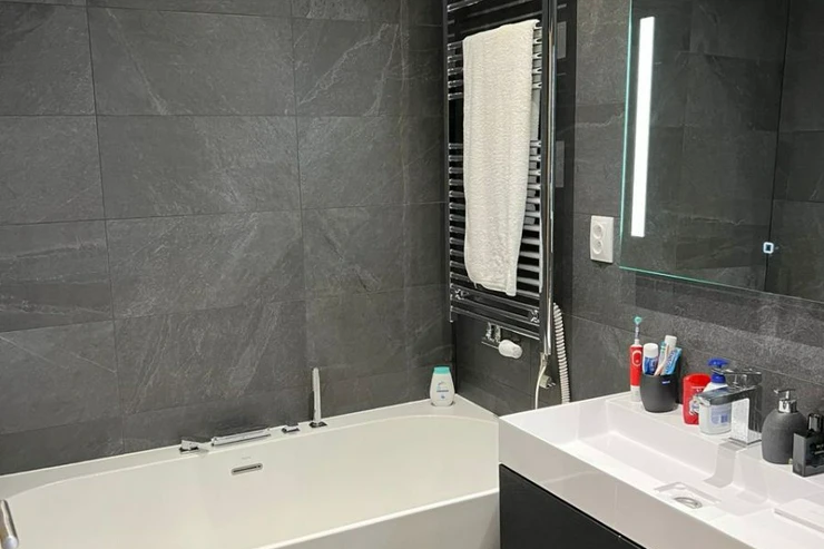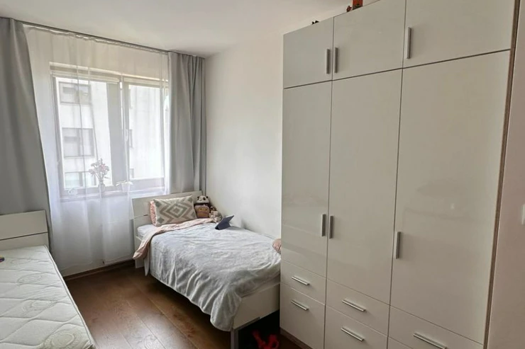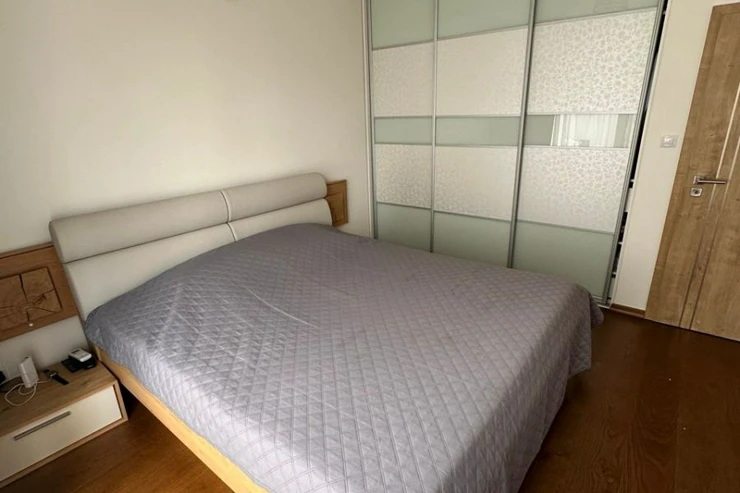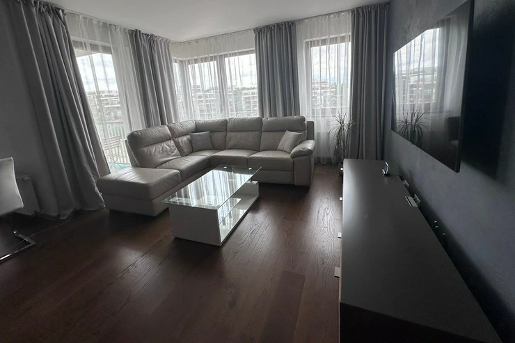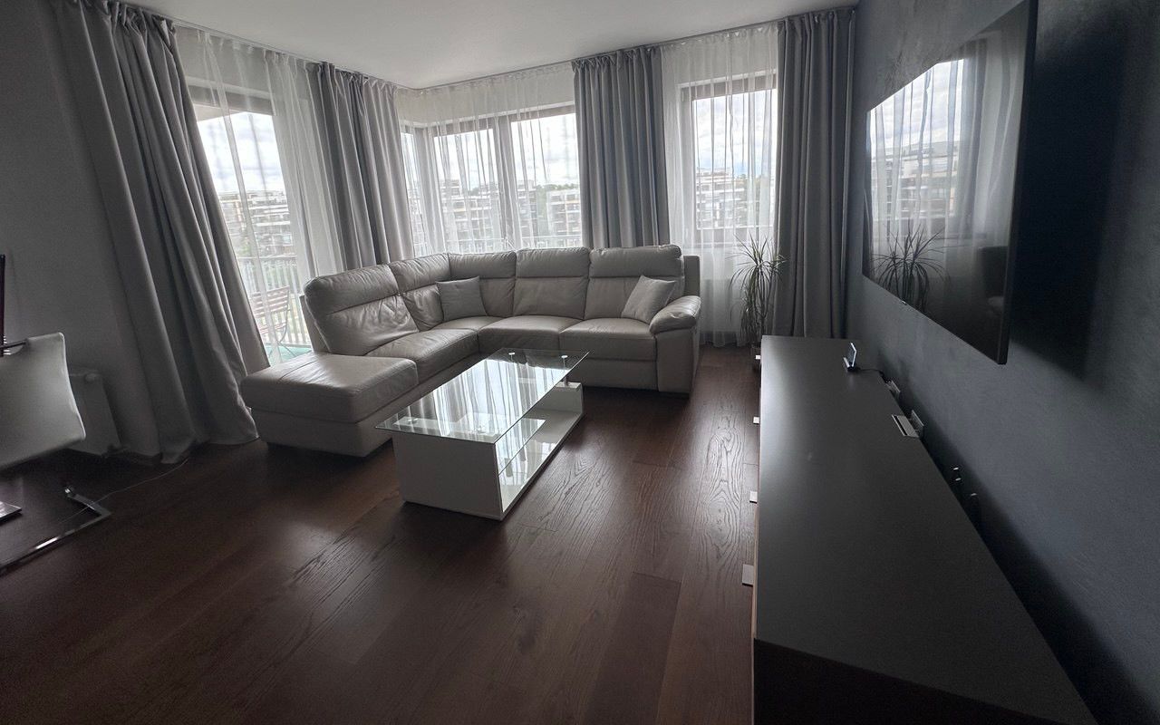The apartment has undergone a complete high-standard renovation and is fully furnished with high-quality premium furniture – modern kitchen, comfortable beds, stylish sofa, coffee table, and wooden floors. The apartment also includes 2 TVs, a washing machine, dining table with chairs, basic kitchen equipment, curtains and drapes.