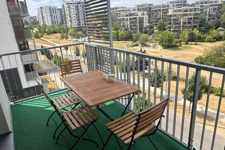 A spacious balcony (7 m²) equipped with outdoor furniture offers a perfect place to relax and enjoy fresh air.