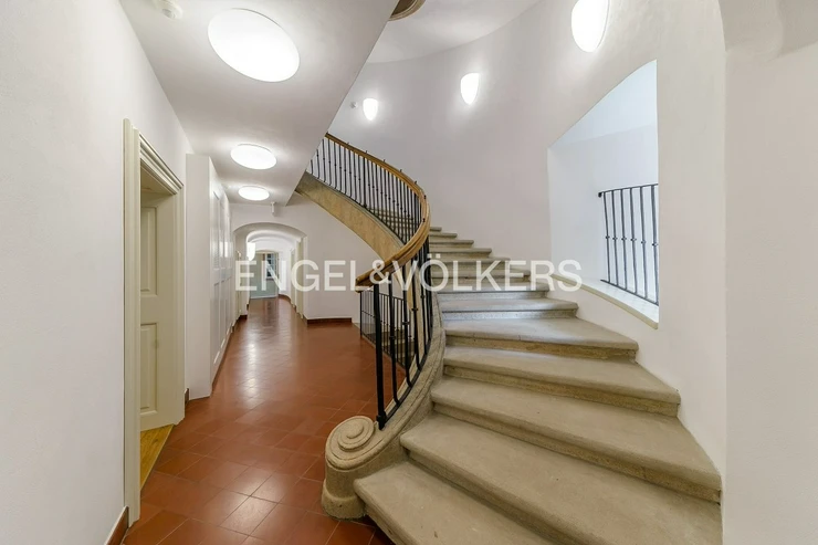 The 16th-century Pinkas Palace has undergone a complete renovation to preserve its original features while creating a modern residence with an elevator, reception, spa with Finnish sauna and steam room, gym, and parking.