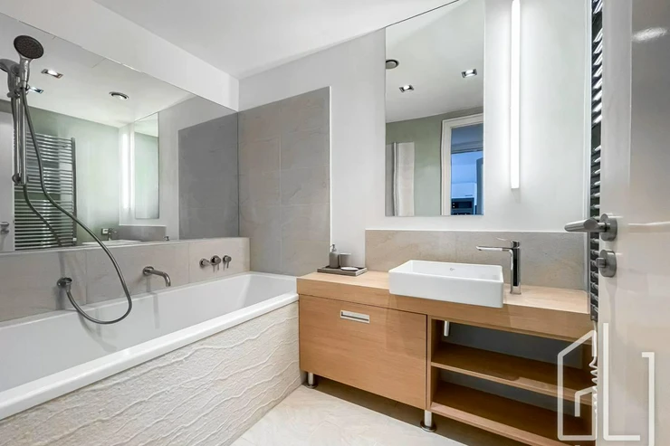Byt se nachází v moderní novostavbě s vysokým standardem bydlení, který zahrnuje recepci 24/7, kamerový systém, ostrahu a další služby jako přebírání balíků nebo zajištění úklidu. Součástí areálu je také krásně upravená zahrada v japonském stylu s vodními prvky, ideální pro relaxaci.
