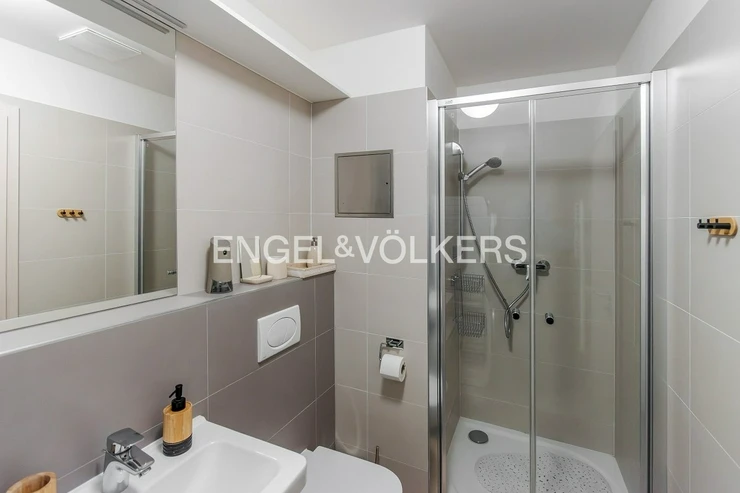 The location offers a full range of amenities and excellent transportation access. Within walking distance are the Letňany Shopping Centre, Globus, Decathlon, and the Form Factory fitness centre. The Letňany Forest Park, ideal for sports and relaxation, is also nearby. The Avia Letňany bus stop is about a 5-minute walk away.