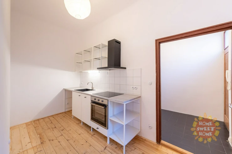 The apartment consists of a living room, kitchen equipped with a hob, oven and extractor hood. There is also a bathroom with bath and toilet, entrance hall. The apartment is entered in front of a cozy backyard.