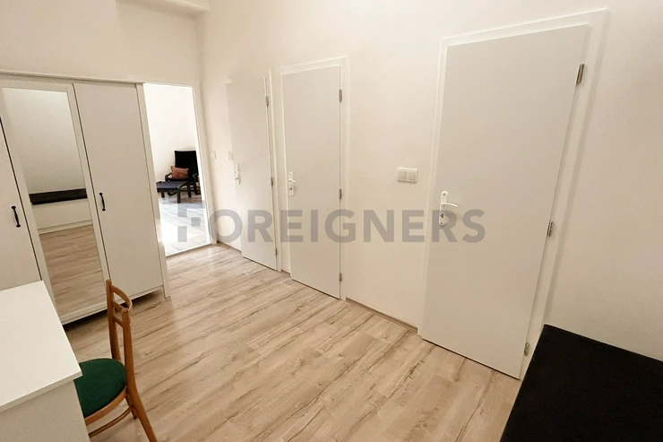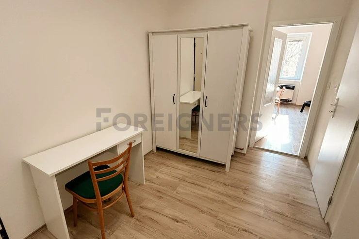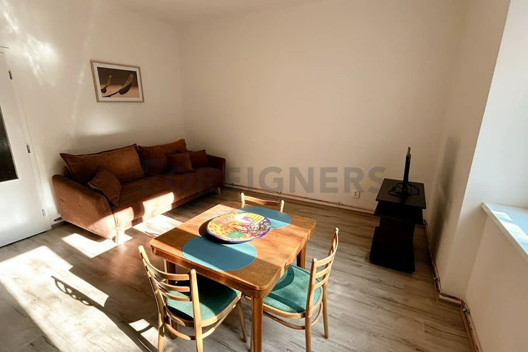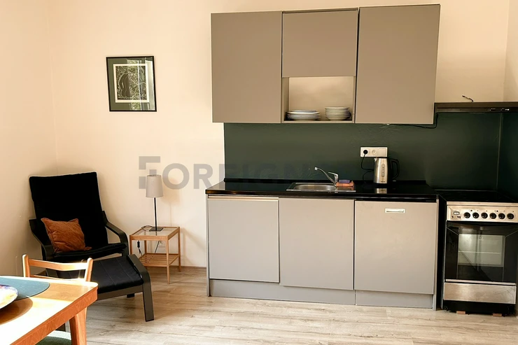 This 36 m² studio is located on the ground floor, offering a peaceful environment with a view of the garden. Situated on Na Hroudě Street, Prague 10, the apartment is conveniently only 15 minutes from the city center by tram.