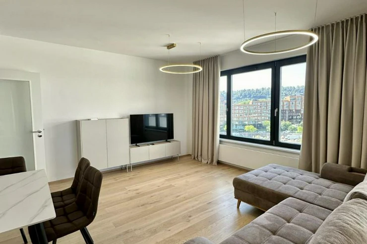 We offer for rent a spacious and modern 2+kk apartment of 67 m and sup2; located in the prestigious Diamanty Karlín residence, Sokolovská 7, Prague 8 Karlín.