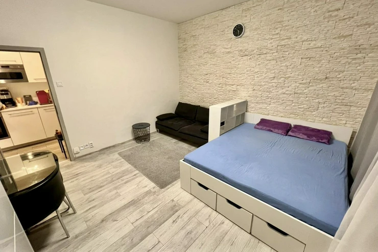 K dlouhodobému pronájmu nabízíme útulný světlý byt 1kk o velikosti 36 m2 nacházející se v 6. patře činžovního domu přímo vedle Václavského náměstí, ul. Krakovska, Praha 1