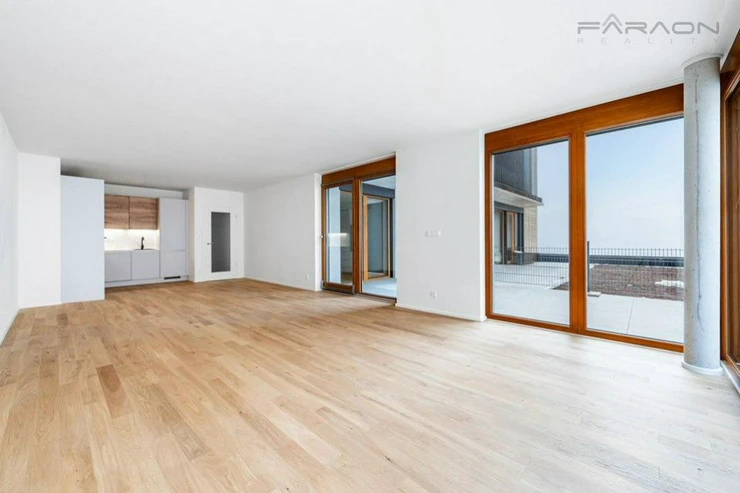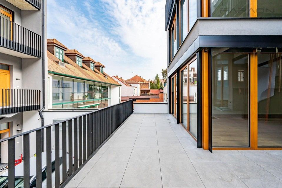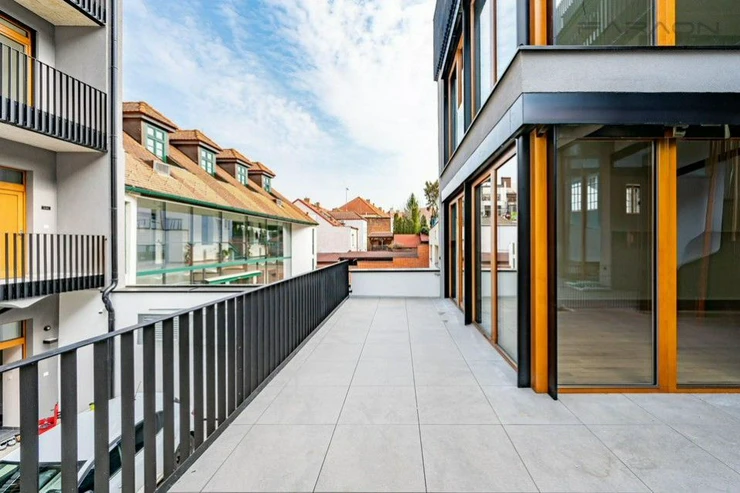 Rent a brand new apartment in a luxury residential project Nad klášterem with a terrace and preparation for a jacuzzi. The entire apartment has large-format windows to the terrace with outdoor blinds, air conditioning. The house is directly opposite the Břevno Monastery, at the tram stop, in a quiet courtyard. The apartment is offered unfurnished, but it is possible to furnish it according to agreement with the tenants. Possibility of renting a parking space in the house.