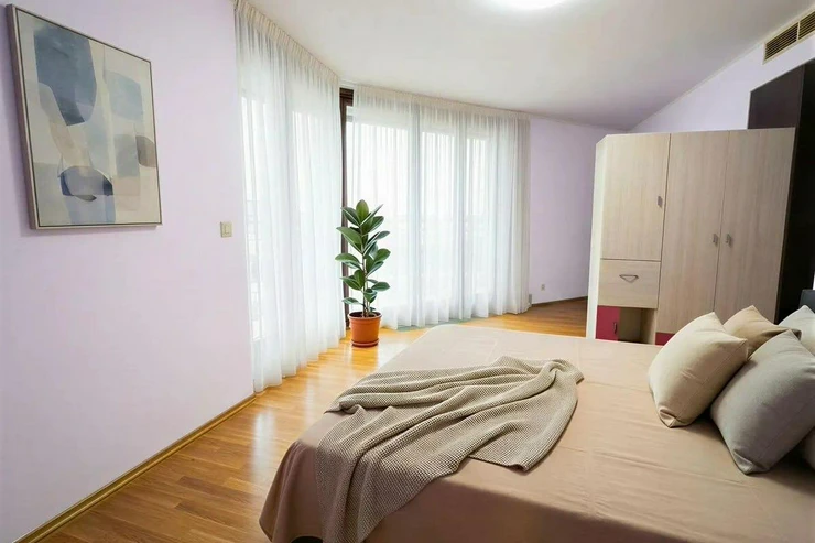 Byt nabízí tři samostatné ložnice, z nichž dvě mají přímý vstup na terasu a jsou vybaveny dvoulůžkovou postelí a vestavěnými skříněmi. Třetí ložnice je ideální jako dětský pokoj nebo pracovna.