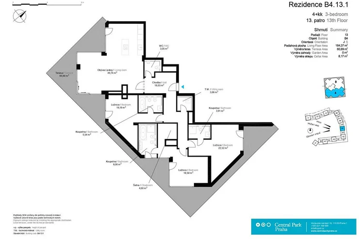 Nabízíme k dlouhodobému pronájmu výjimečný, luxusní byt 4+kk o celkové ploše 157 m and sup2; s prostornou terasou 60 m and sup2;, situovaný ve 12. nadzemním podlaží prestižní rezidence Central Park, Praha 3 Žižkov, ul. Ke Kapslovně.