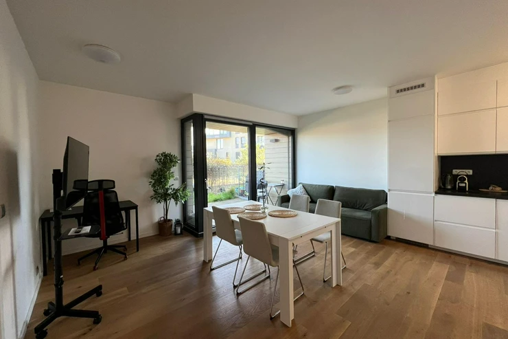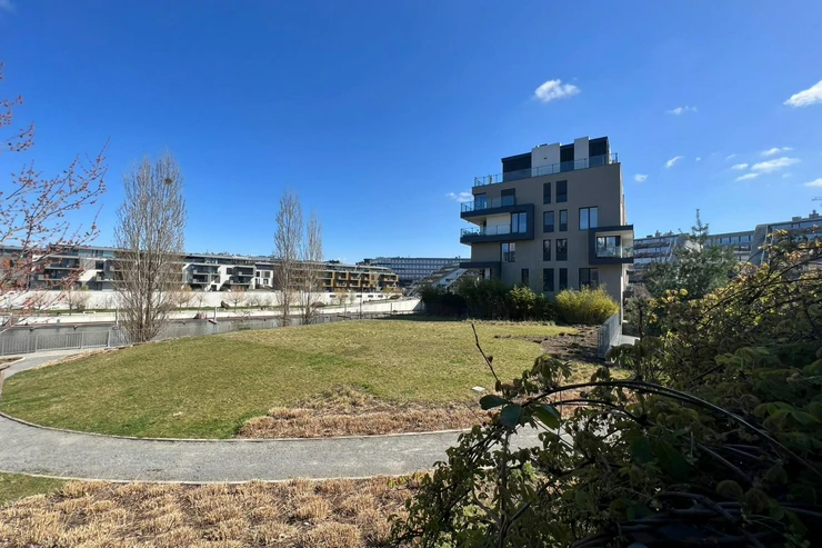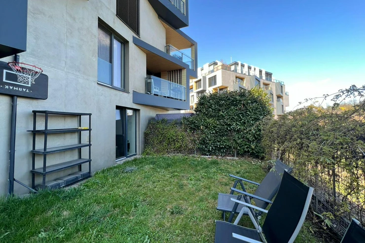We offer for rent a stylish 2+kk apartment with a private garden in the prestigious Dock residence, Prague 8.