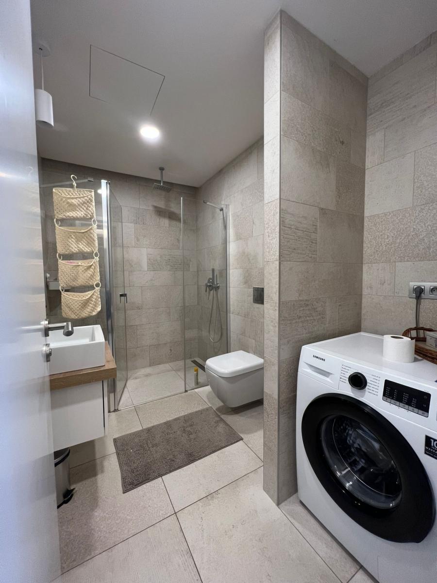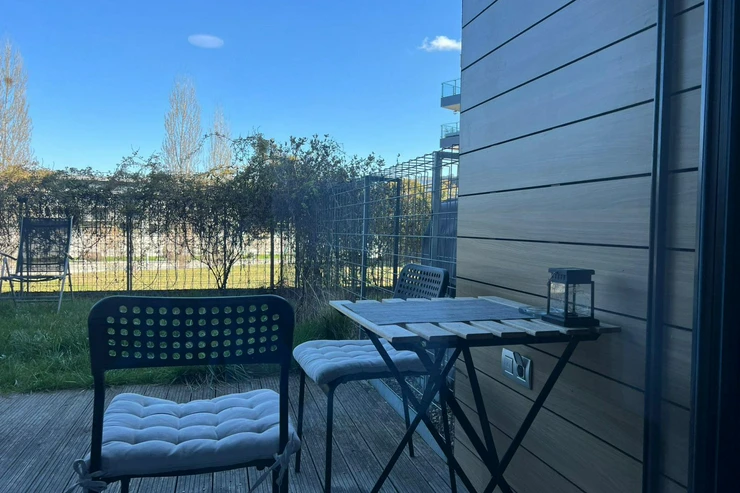 The apartment has a total area of 60 m and sup2; and is located on the ground floor. It also features a private garden of 40 m and sup2;, perfect for relaxing, working outdoors, or entertaining guests.