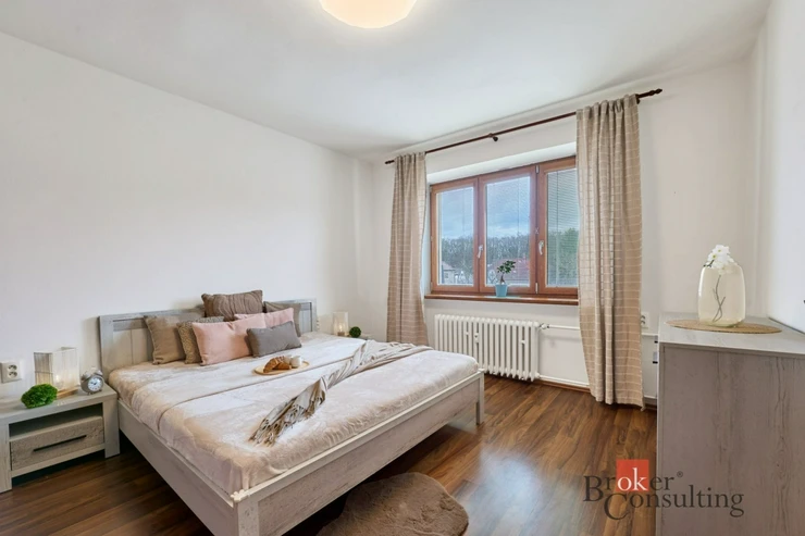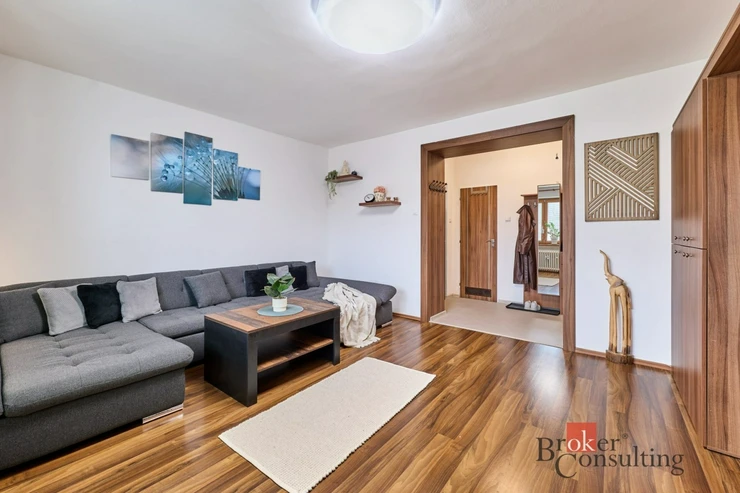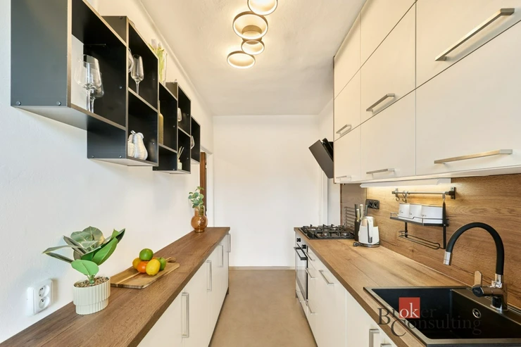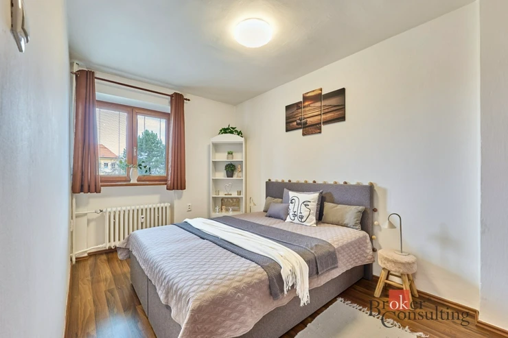 Byt je velmi prakticky řešený – neprůchozí pokoje, samostatná kuchyně a dostatek úložných prostor. Byt je možno pronajmout takto vybavený.