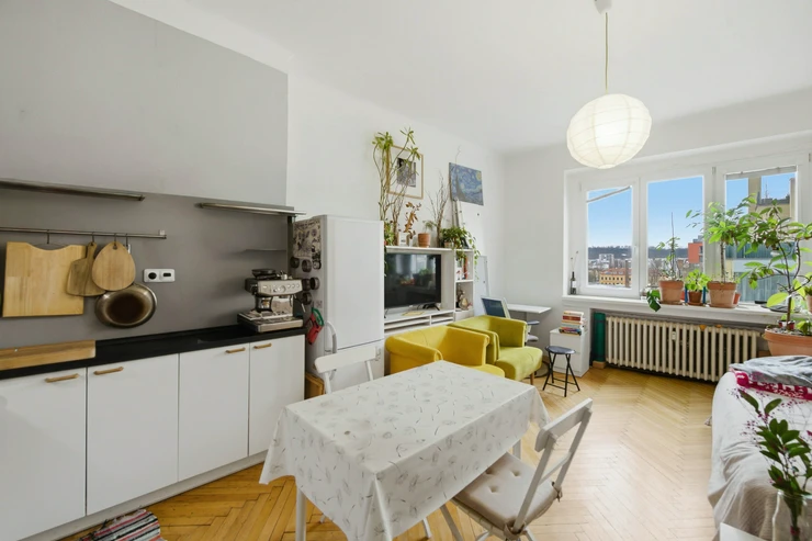 We offer you a furnished 1-bedroom apartment for rent with an area of 31.3 sqm, in Prague 7, Dělnická street - Holešovice
