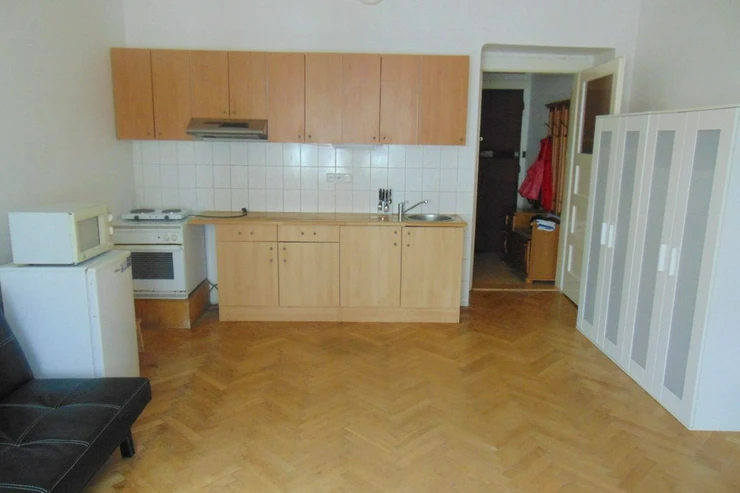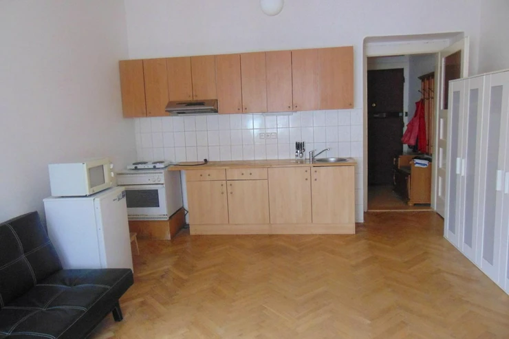 Dlouhodobý pronájem útulného bytu 1+kk v činžovním domě v Nuslích, ul. U Křížku. Byt je částečně zařízen základním nábytkem a spotřebiči. Možná instalace patra na spaní. Klidná lokalita, na zemi parkety a dlažba, v koupelně sprchový kout. K dispozici internet Vodafone. Do 2 osob, volné od 10.4. Vratná kauce 1 nájmu, provize 1 nájem. Prohlídky po dohodě.