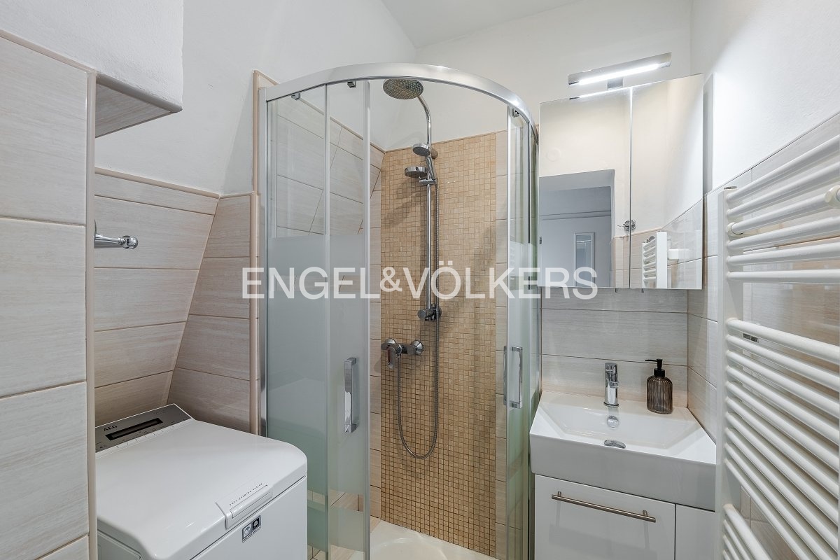 The quiet Smíchov neighborhood offers excellent amenities – nearby you’ll find shops, parks, kindergartens, elementary schools, and sports facilities. Public transport is easily accessible, with the Nad Klamovkou bus stop and the Klamovka tram stop close by.