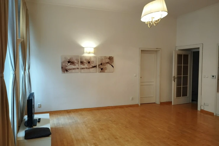 We offer for rent a spacious, partially furnished two bedroom apartment with a balcony, located on the 3rd floor of an apartment building with an elevator in a sought-after area of Prague 2 - Vinohrady, just a few steps from Náměstí Míru. The apartment, with a total area of 122 sqm, features an entrance hall, a generous living room connected to a dining area and a fully equipped kitchen, two bedrooms (one with direct access to a balcony facing a quiet courtyard), a bathroom with a bathtub, shower, sink and toilet, a guest toilet, and a storage room.