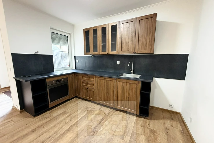 Interiér tvoří moderní kuchyňská linka, elegantní koupelna, nové podlahy a interiérové dveře – vše ve vysokém standardu a v jednotném stylu.
